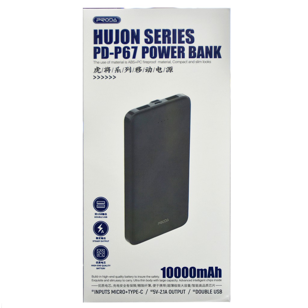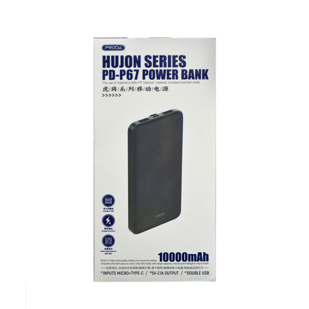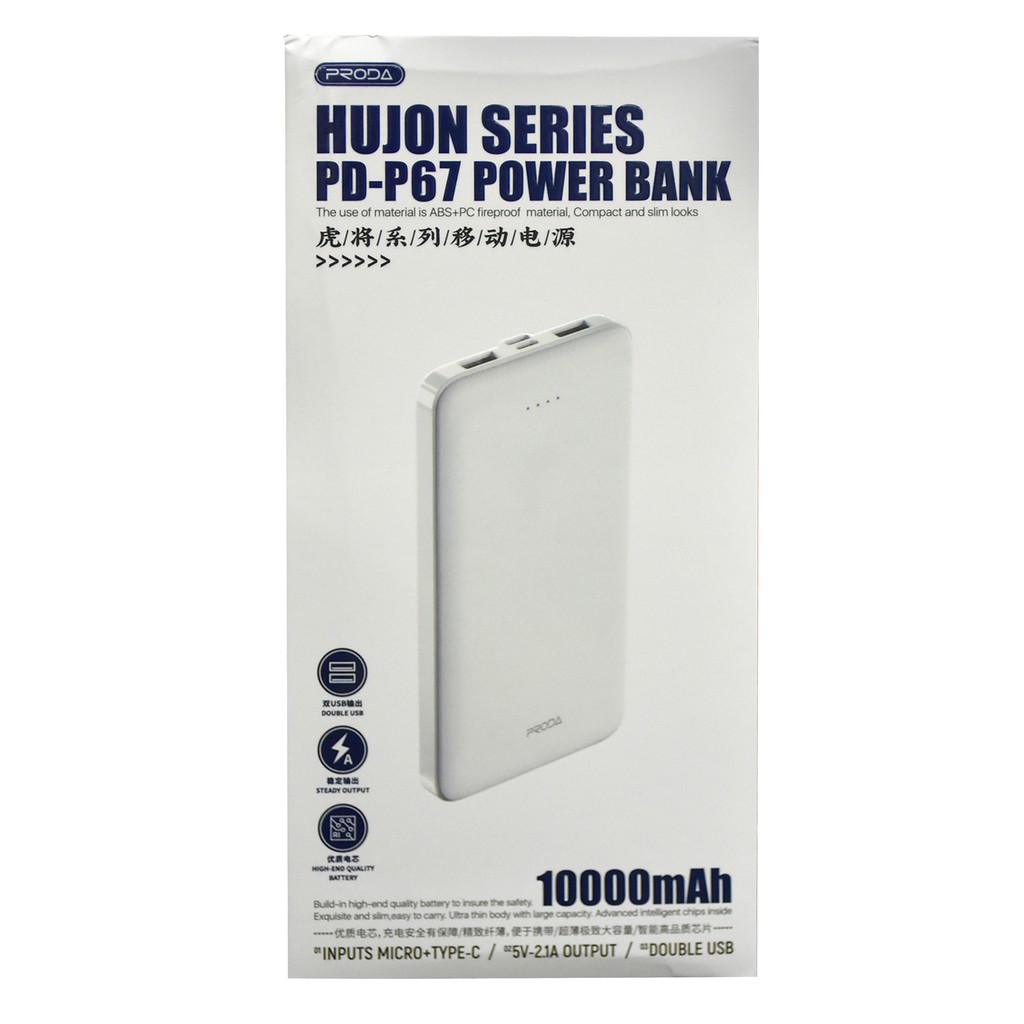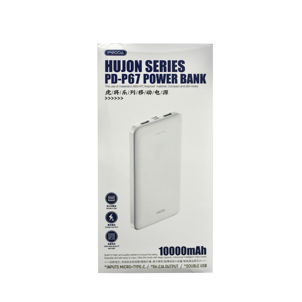 พาวเวอร์แบงค์ แบตสำรอง PRODA รุ่น PD-P39 ความจุ 10000mAh มีไฟแสดงสถานะแบตเตอรี่ น้ำหนักเบา พกพาสะดวก