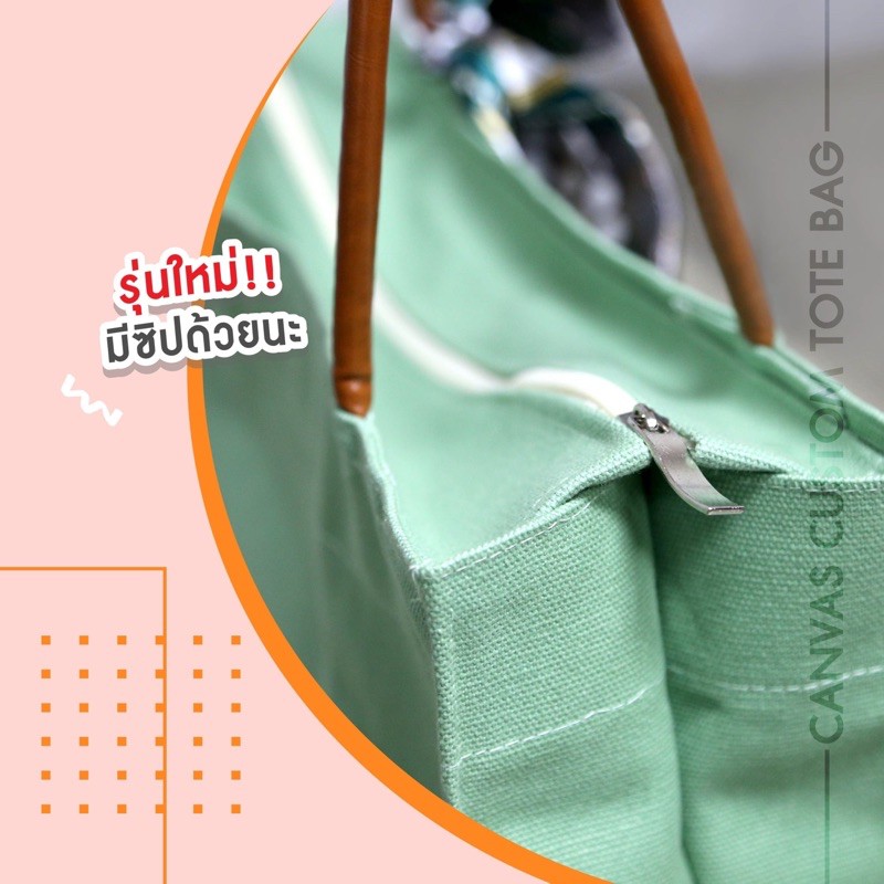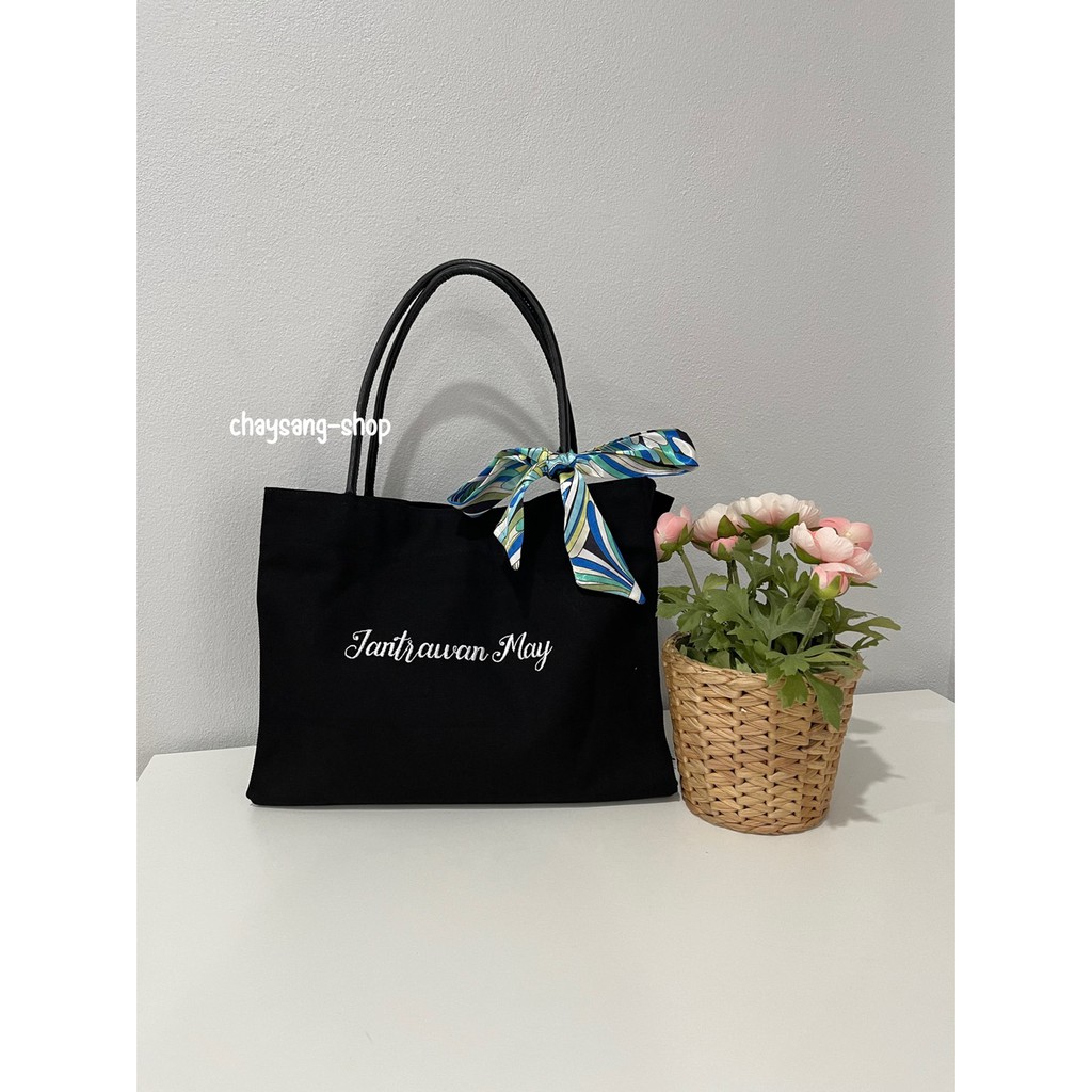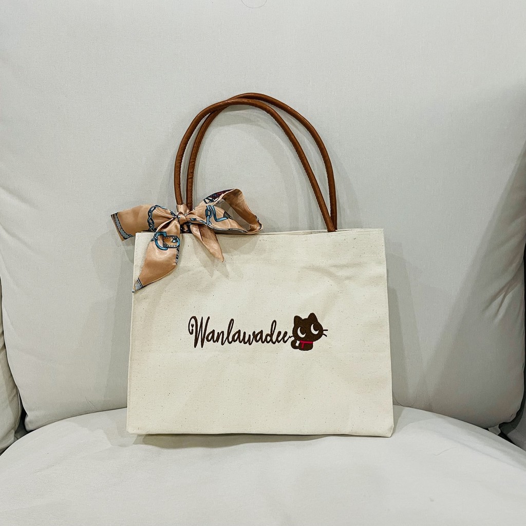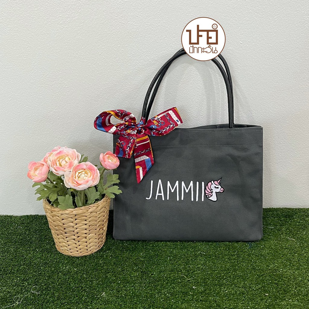 รุ่นใหม่มีซิป!!กระเป๋าผ้าปักชื่อ ^^แถมผ้าผูกโบว์^^ ใบใหญ่ ผ้าดี ทนทาน