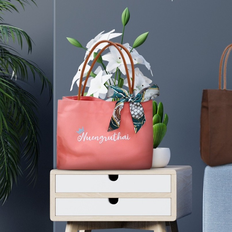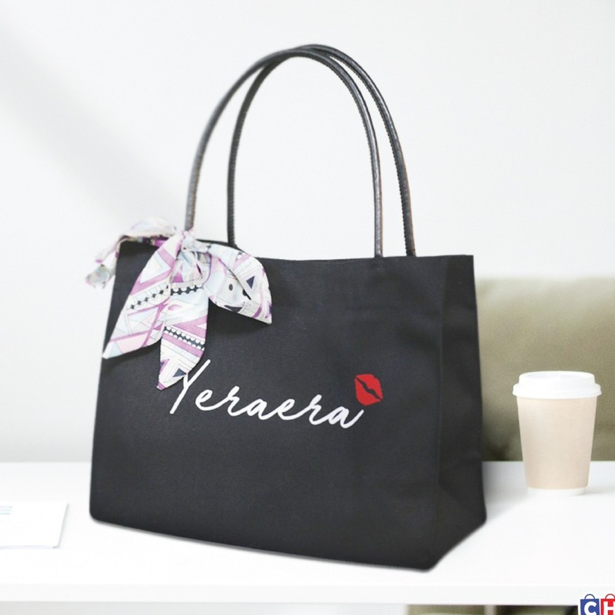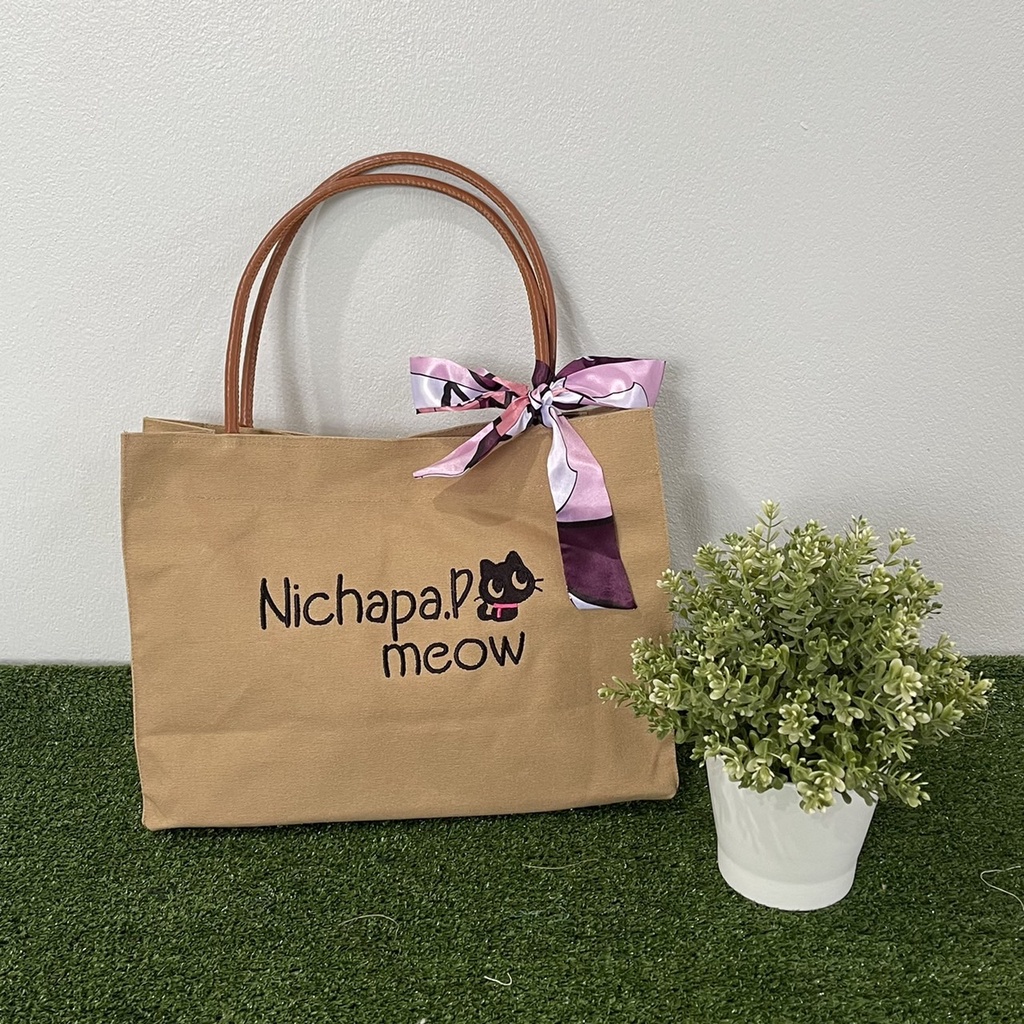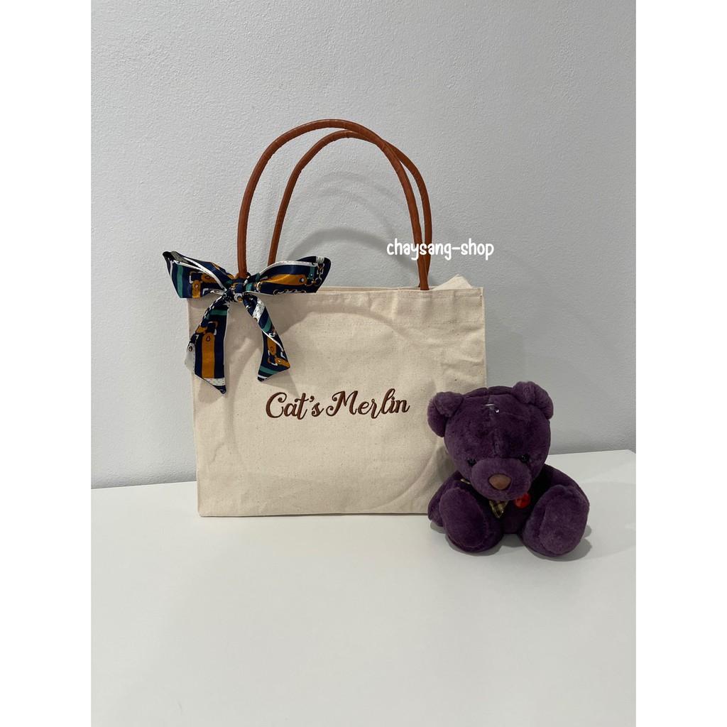 รุ่นใหม่มีซิป!!กระเป๋าผ้าปักชื่อ ^^แถมผ้าผูกโบว์^^ ใบใหญ่ ผ้าดี ทนทาน