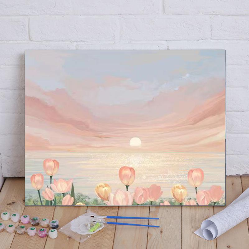 Hamlet【40*50 ซม】ระบายสีตามตัวเลข DIY/มือวาด/ภาพวาดสีน้ำมัน/ทิวลิปพระอาทิตย์ขึ้นภูมิทัศน์/การรักษาภาพวาดตกแต่งของขวัญด้วยมือ
