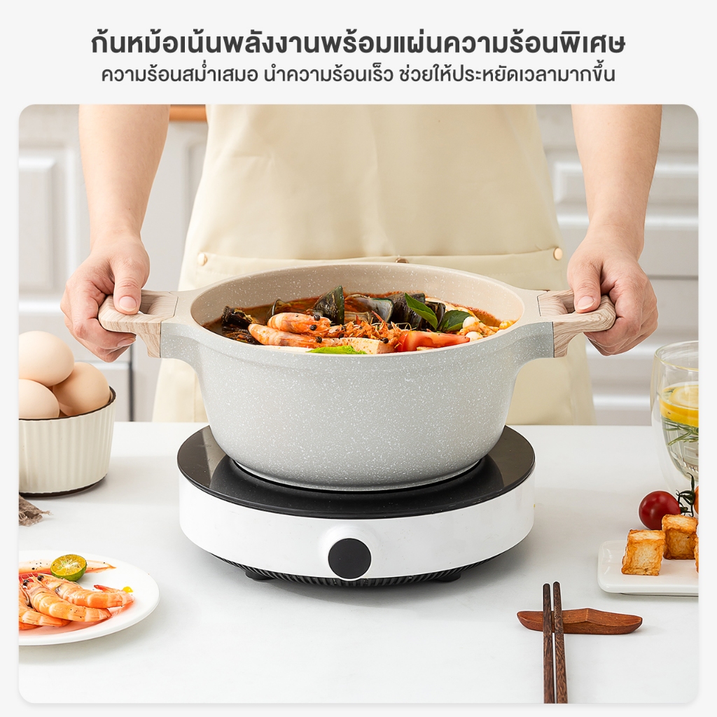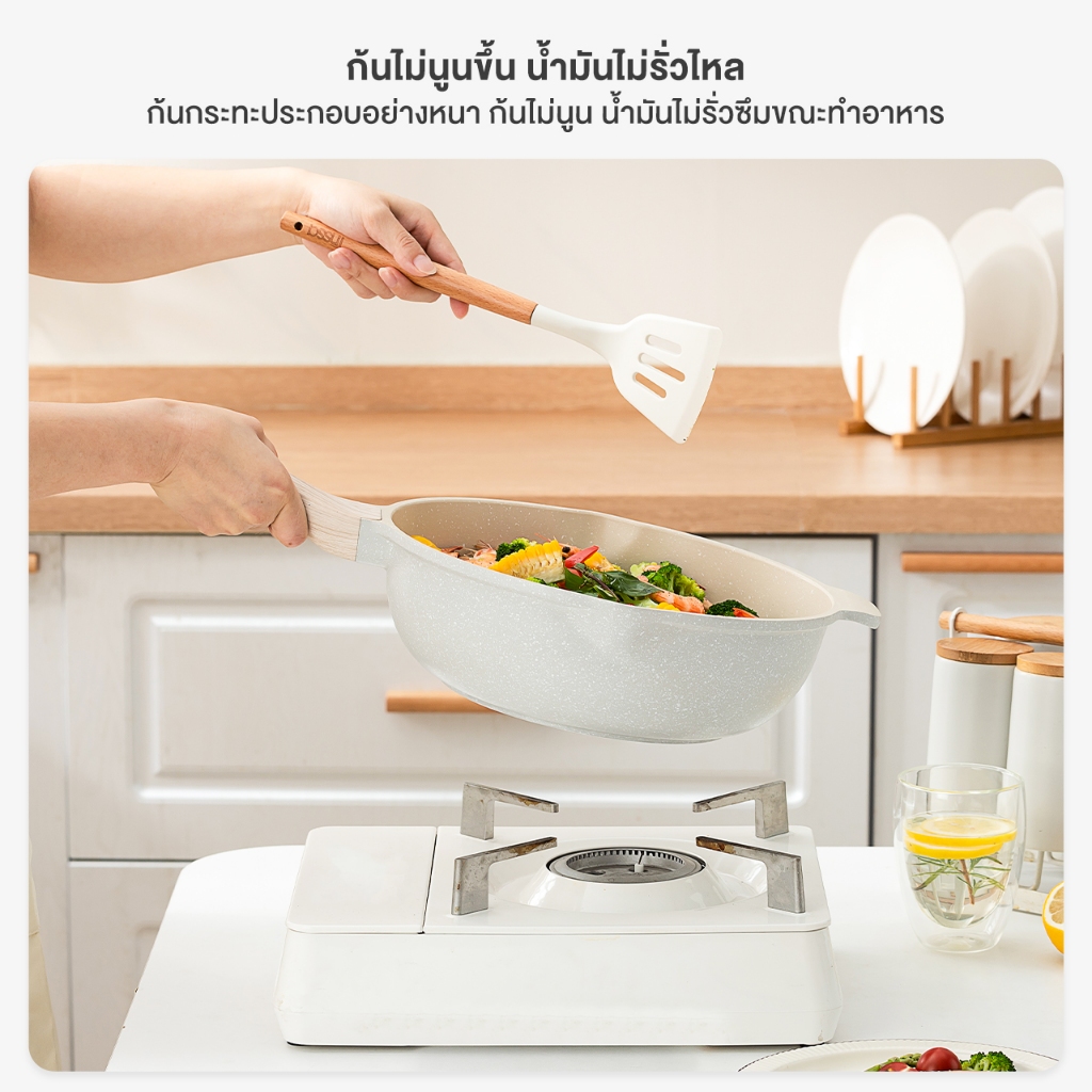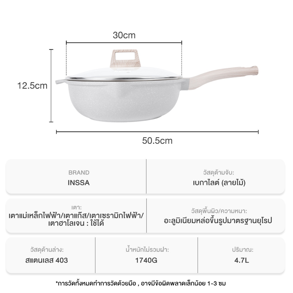 ชุดกระทะ INSSA กระทะไม่ติด กระทะ กะทะ กระทะหินไมฟาน กระทะก้นลึก ผัด ทอด เตาแม่เหล็กไฟฟ้า ปราศจาก PFOA 100% GUOJ011
