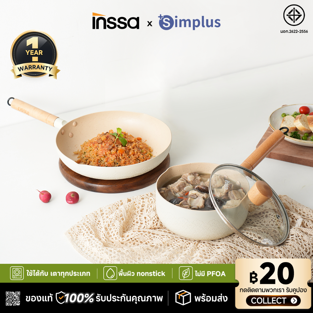 [รับประกัน 1 ปี] INSSA กระทะ หม้อ 18/20 ซม. Induction ใช้ได้กับเตาทุกประเภท กระทะไม่ติด หม้อนม หม้อเด็ก GUOJ020
