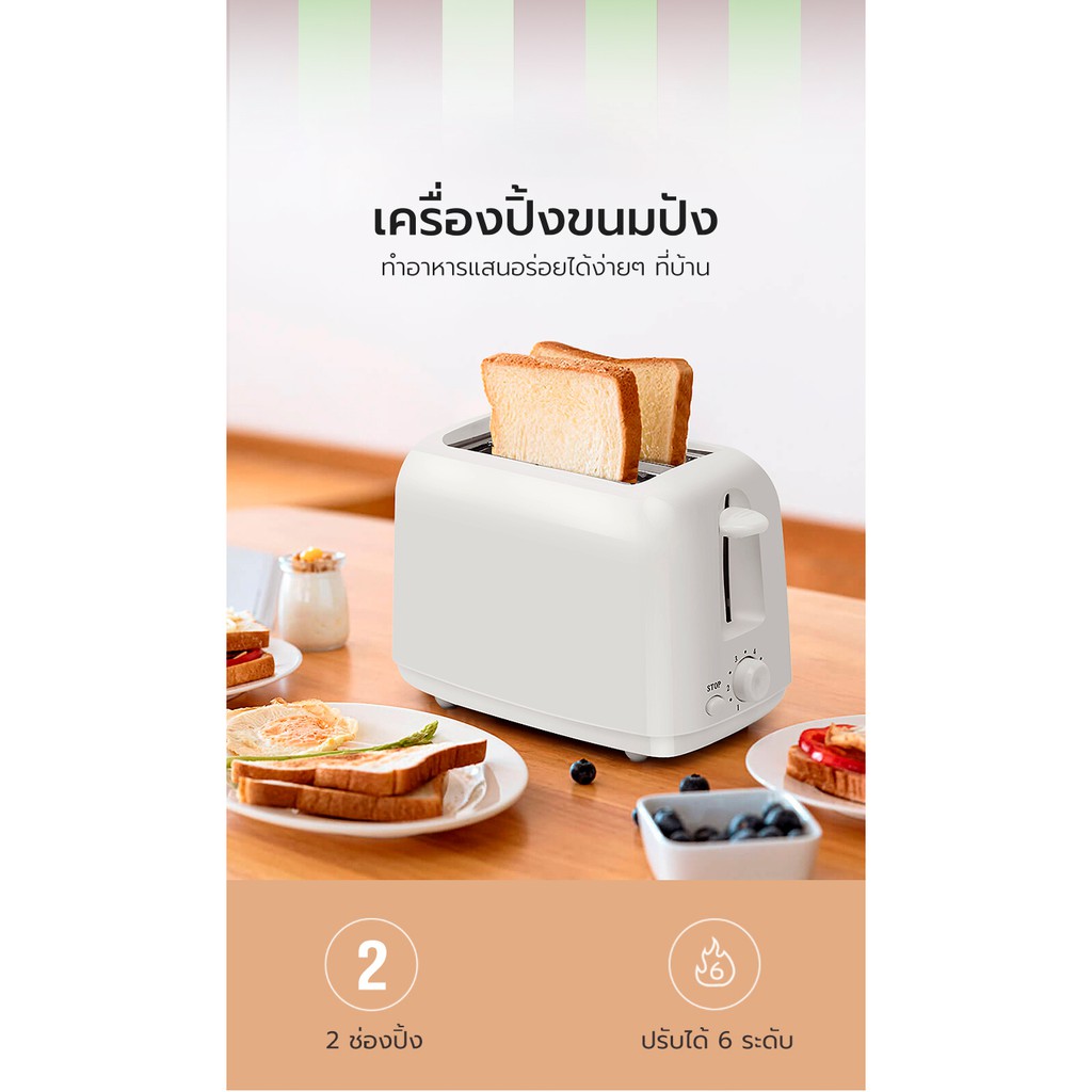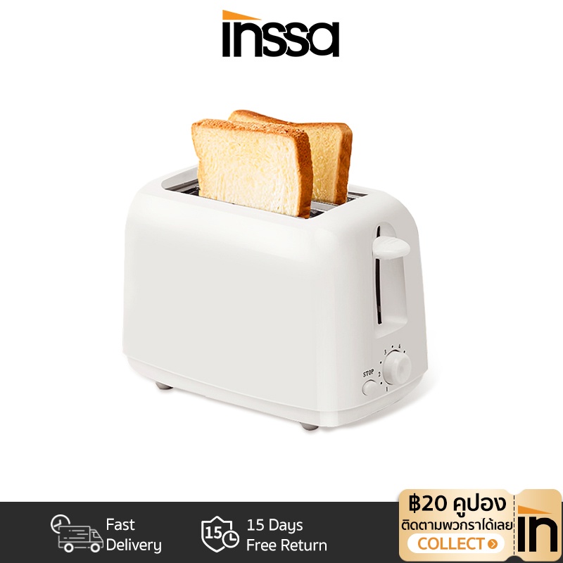 [รับประกัน 1 ปี] INSSA เครื่องปิ้งขนมปัง Toasters เครื่องทำอาหารเช้าแบบมัลติฟังก์ชั่น2ชิ้น DSLU001