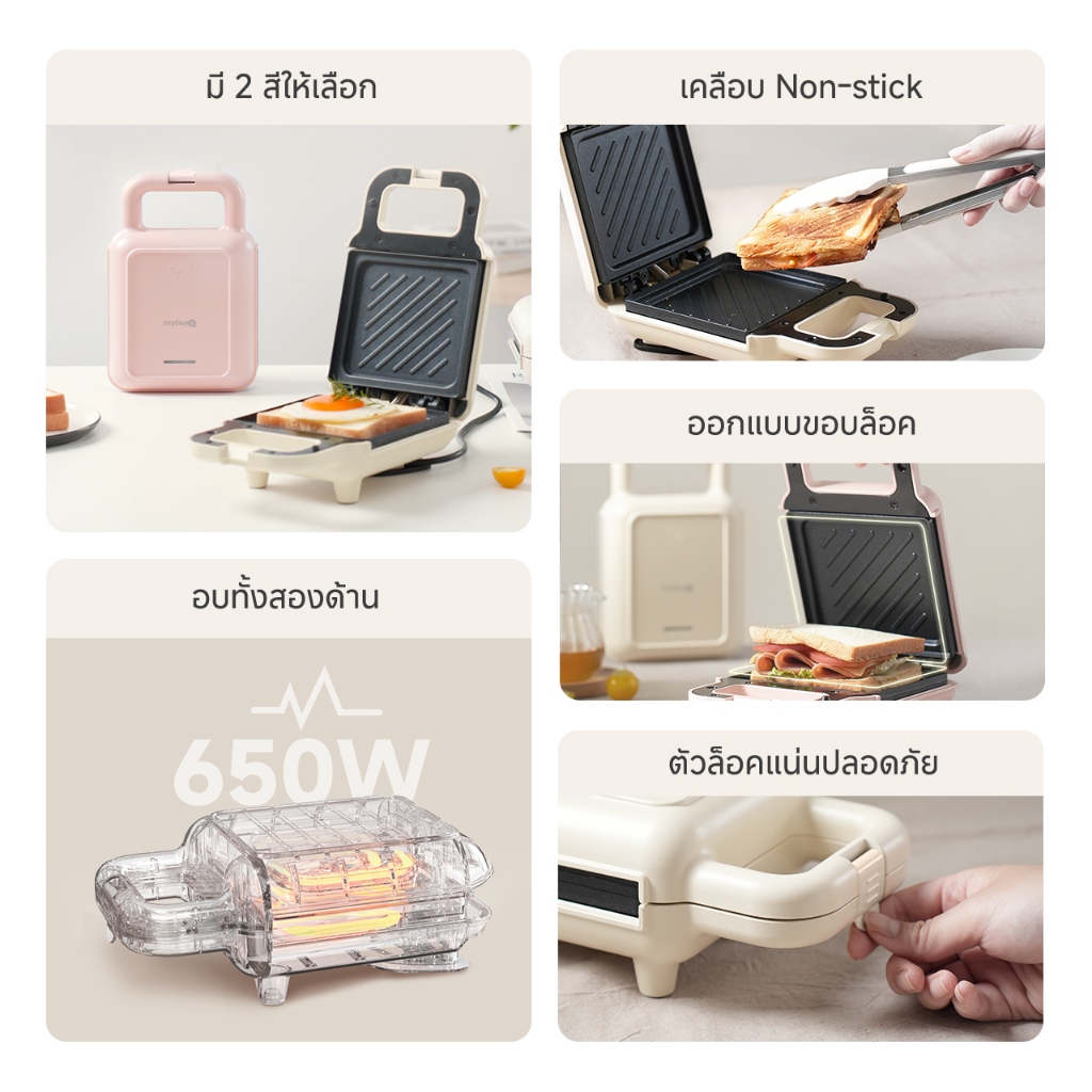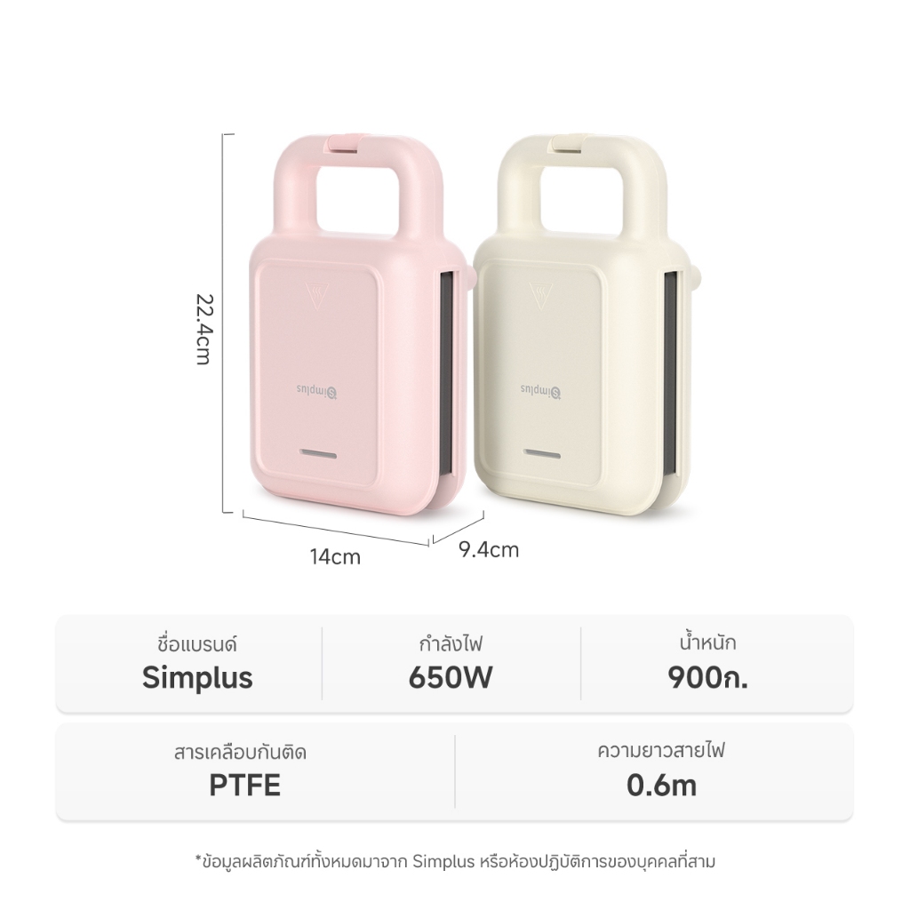 Simplus เครื่องทำแซนด์วิช 650W การปิ้งขนมปังทั ้ง สองด้านอย่างรวดเร็วใน 5 นาที เหมาะสำหรับมื้อเช้าสุด SMZJ001