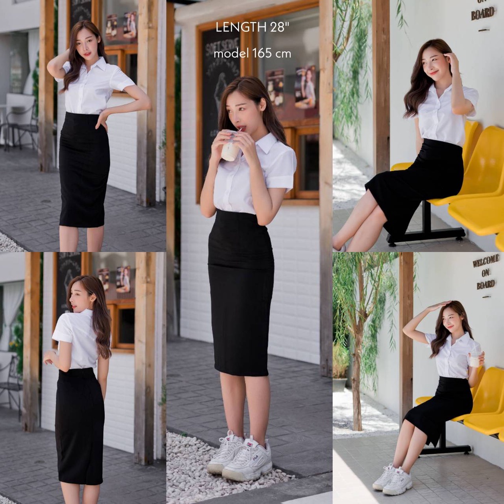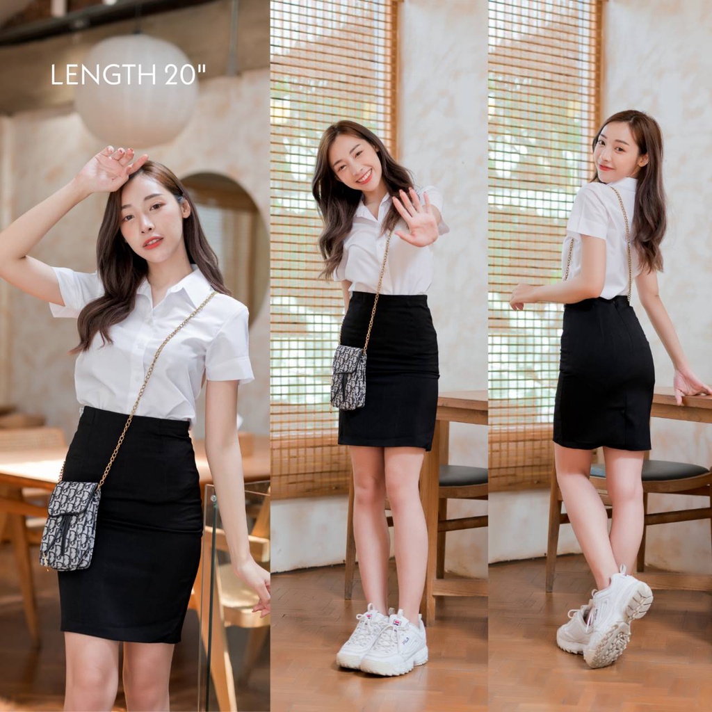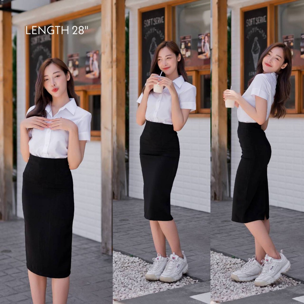 กระโปรงทรงเอนักศึกษา ทรงเอผ่าหลัง ความยาว 20-28“เอว 23-45” ผ้าฮานาโกะ เนื้อผ้านิ่มยืดใส่สบาย