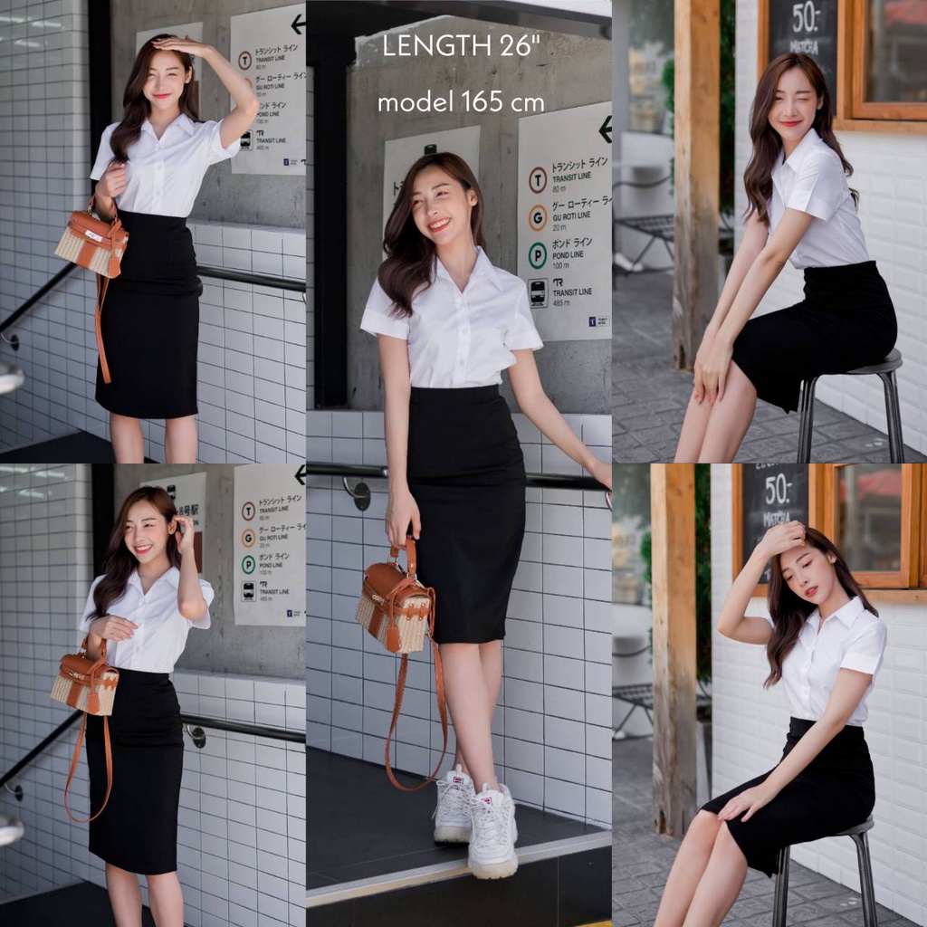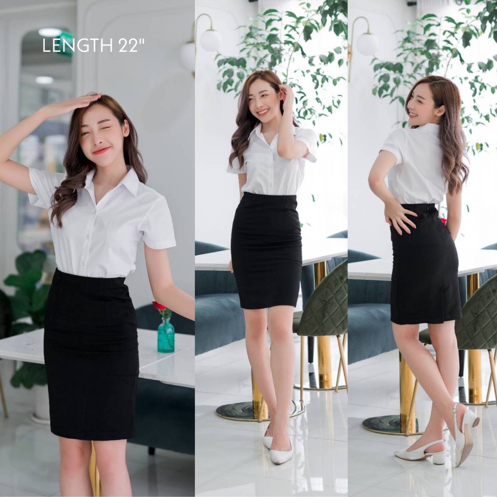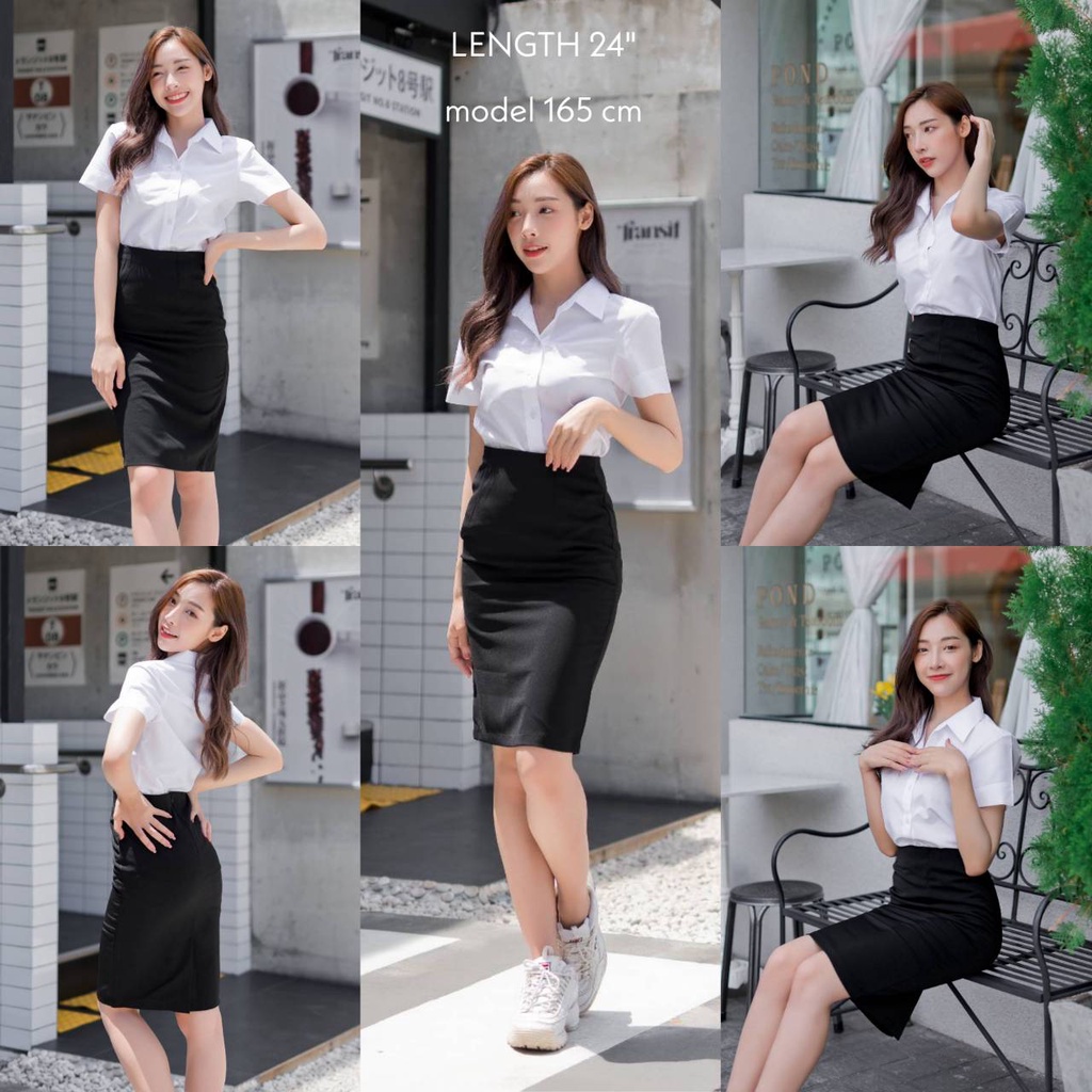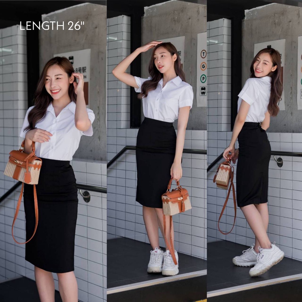 กระโปรงทรงเอนักศึกษา ทรงเอผ่าหลัง ความยาว 20-28“เอว 23-45” ผ้าฮานาโกะ เนื้อผ้านิ่มยืดใส่สบาย