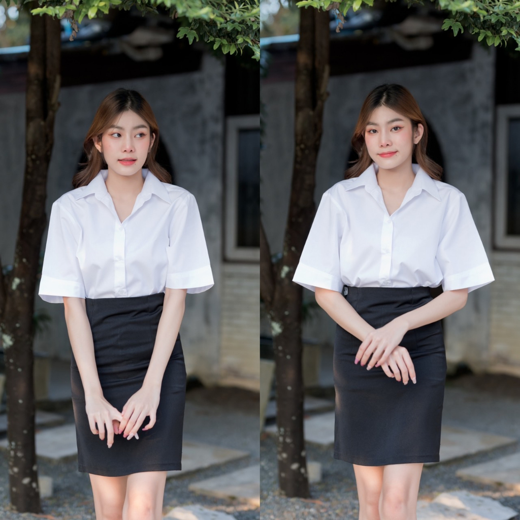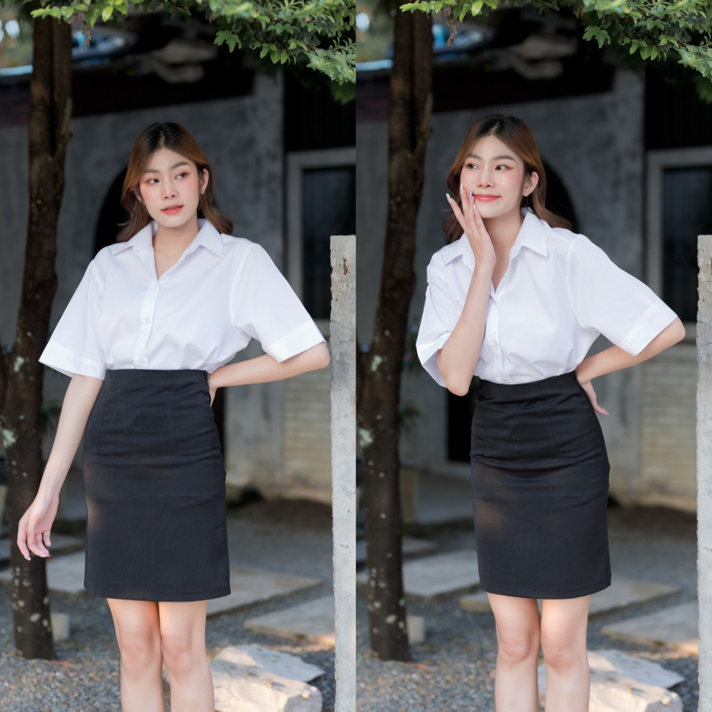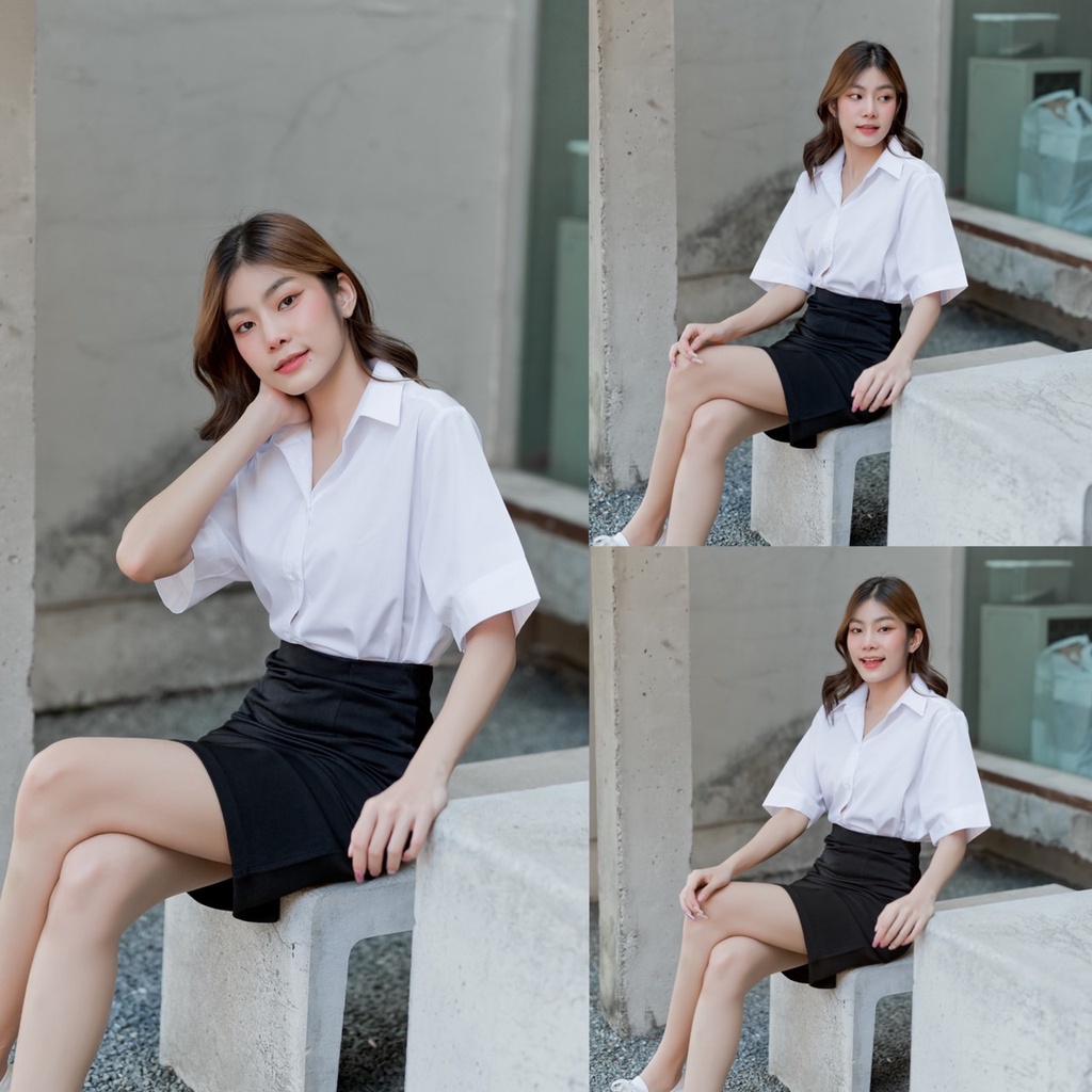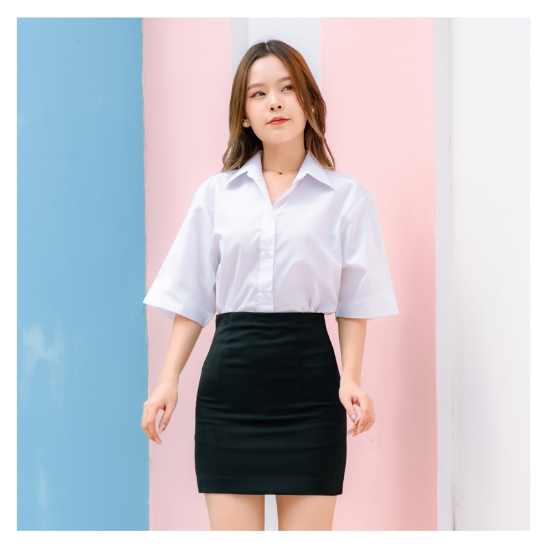 เสื้อนักศึกษาหญิง ทรงบอย แขนสามเหลี่ยม ความยาวแขน 9-10” ทรงบอยสลิมเข้ารูป Sz.32-42