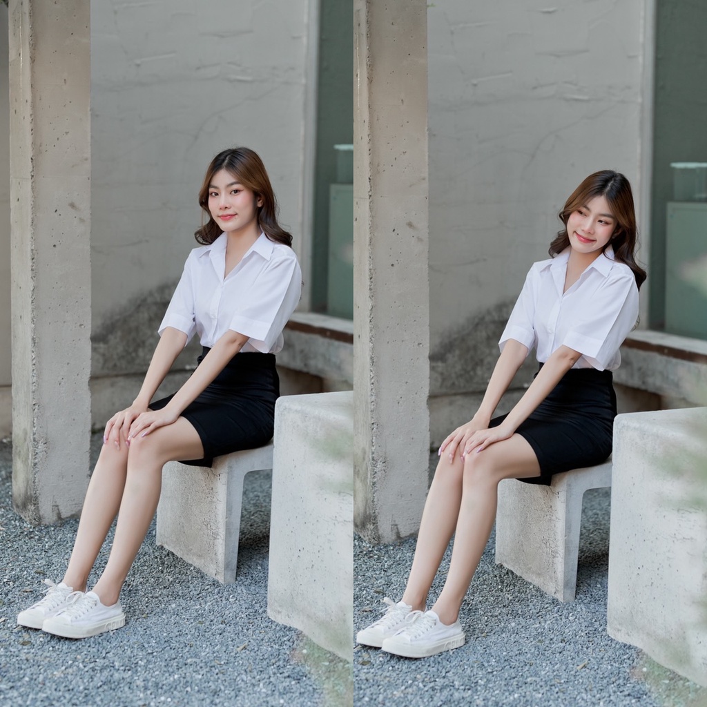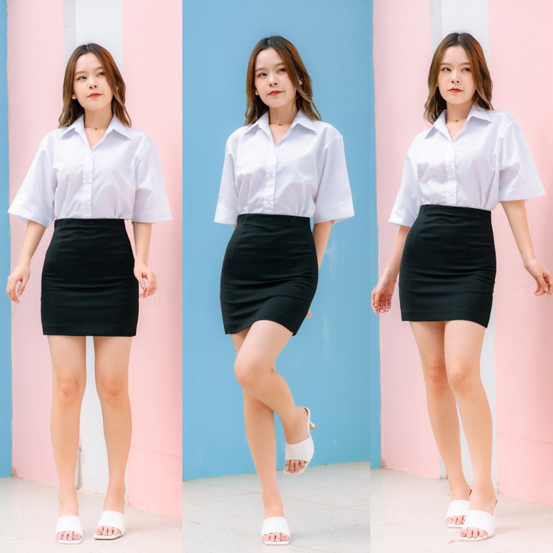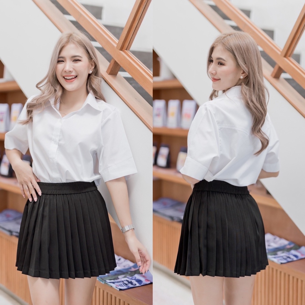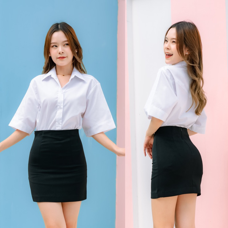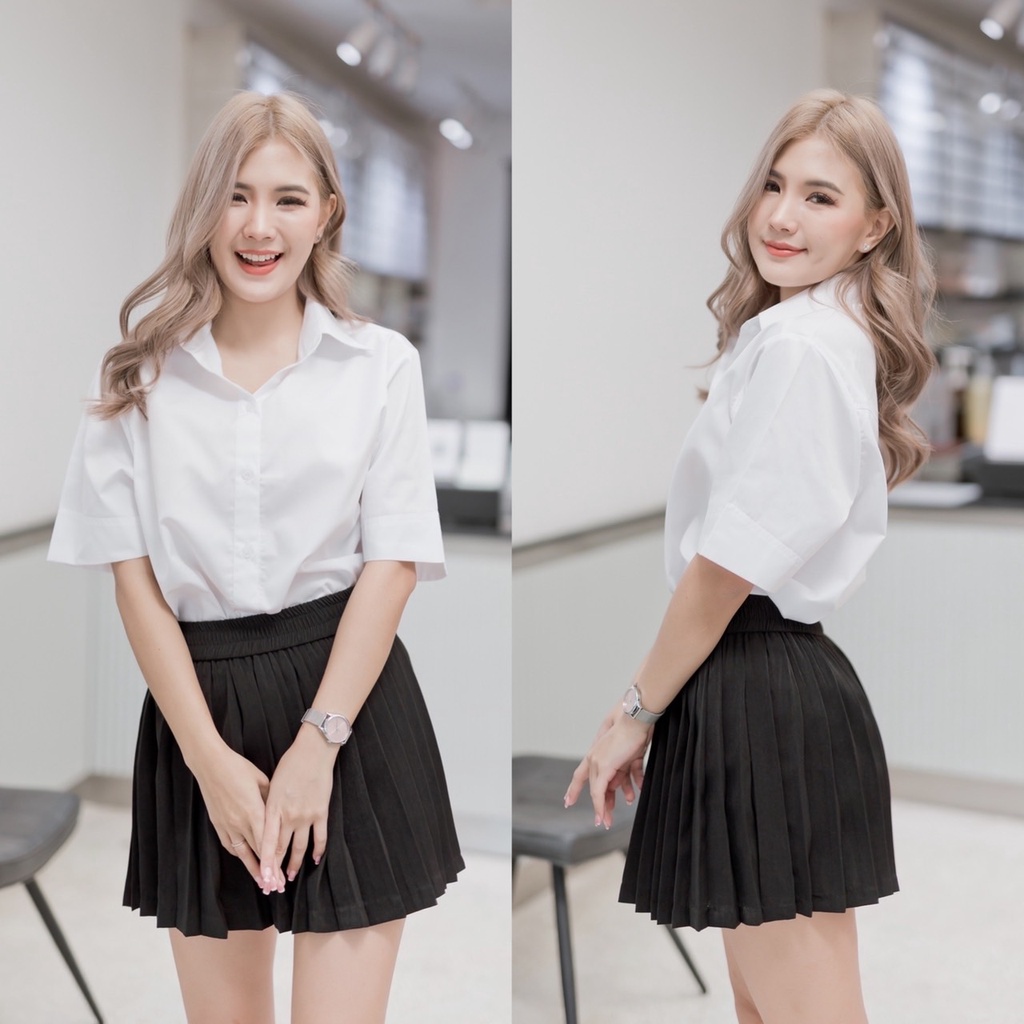 เสื้อนักศึกษาหญิง ทรงบอย แขนสามเหลี่ยม ความยาวแขน 9-10” ทรงบอยสลิมเข้ารูป Sz.32-42