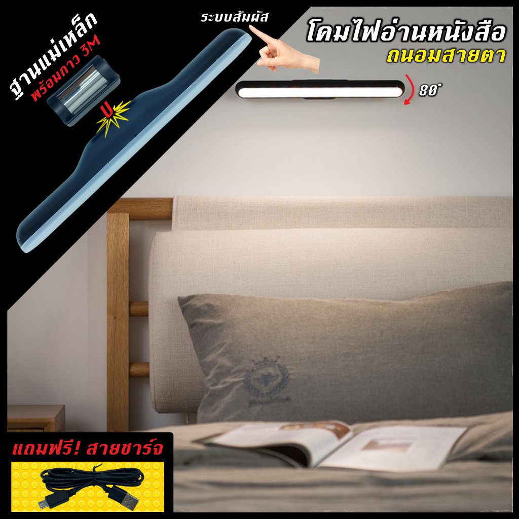 ไฟอ่านหนังสือ โคมไฟ LED ถนอมสายตา โคมไฟตั้งโต๊ะ ไฟหัวเตียง อัจฉริยะ Bedside lamp ไฟหอพัก led lamp ไฟแต่งหน้า
