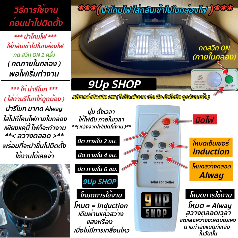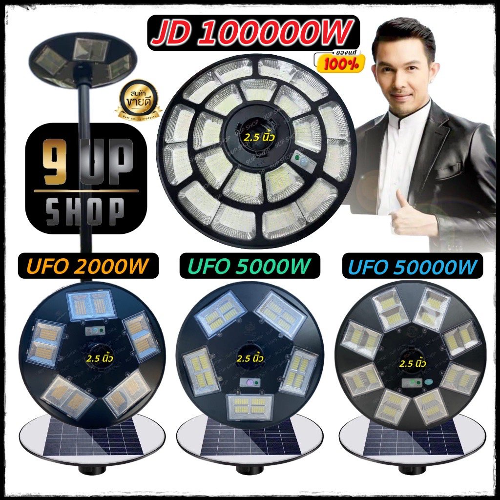 ไฟโซล่าเซลล์ UFO 2000W - 100000W แสงขาว/แสงเหลือง ไฟสนาม 3-8 ทิศทาง พลังงานแสงอาทิตย์