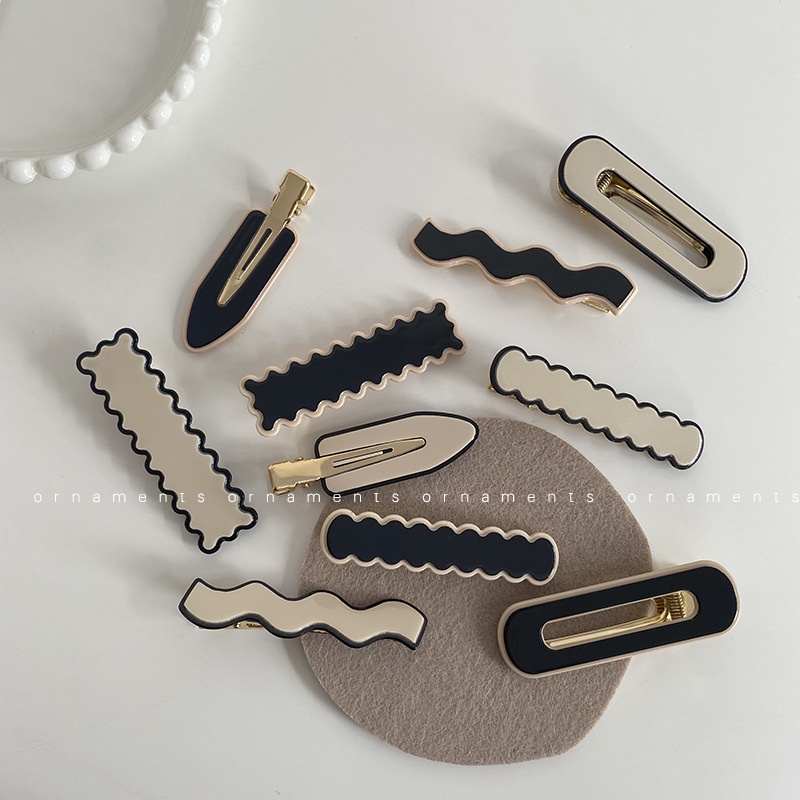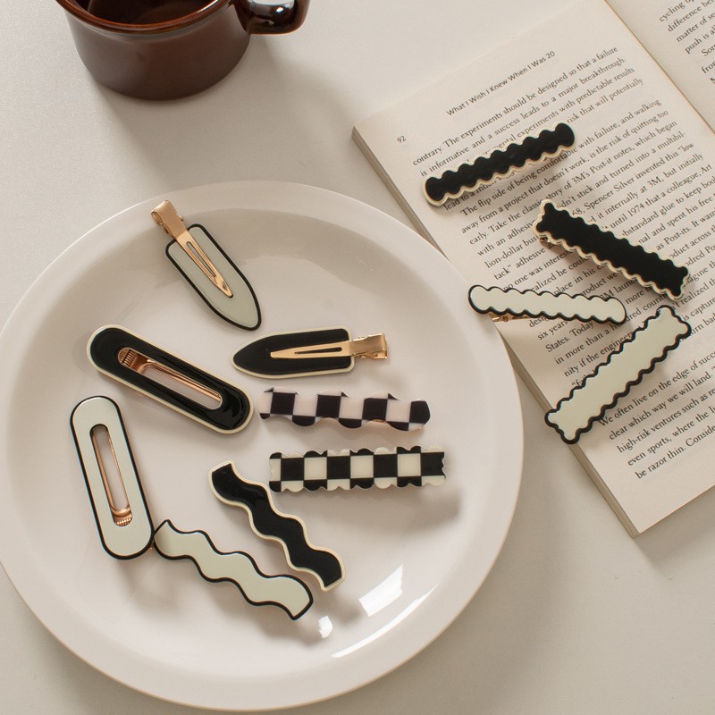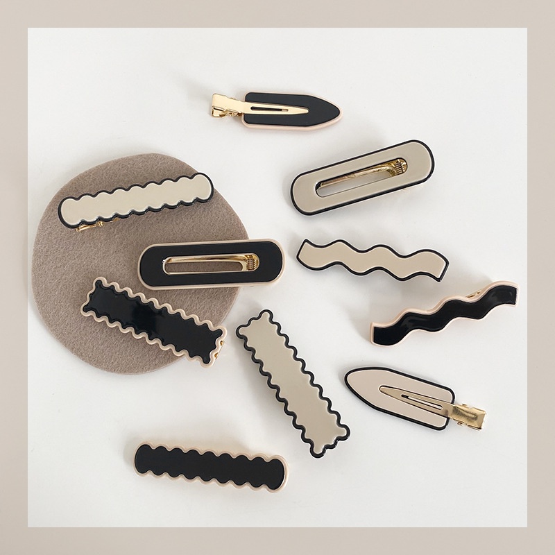 กิ๊บติดผมแฟชั่นสไตล์เกาหลีเรียบง่ายสีดําสีขาว