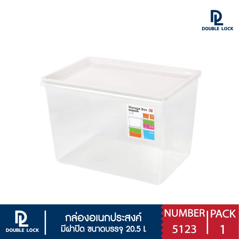 Double Lock กล่องพลาสติก กล่องเก็บของ มีฝาปิด ความจุ 20.5 ลิตร รุ่น 5123