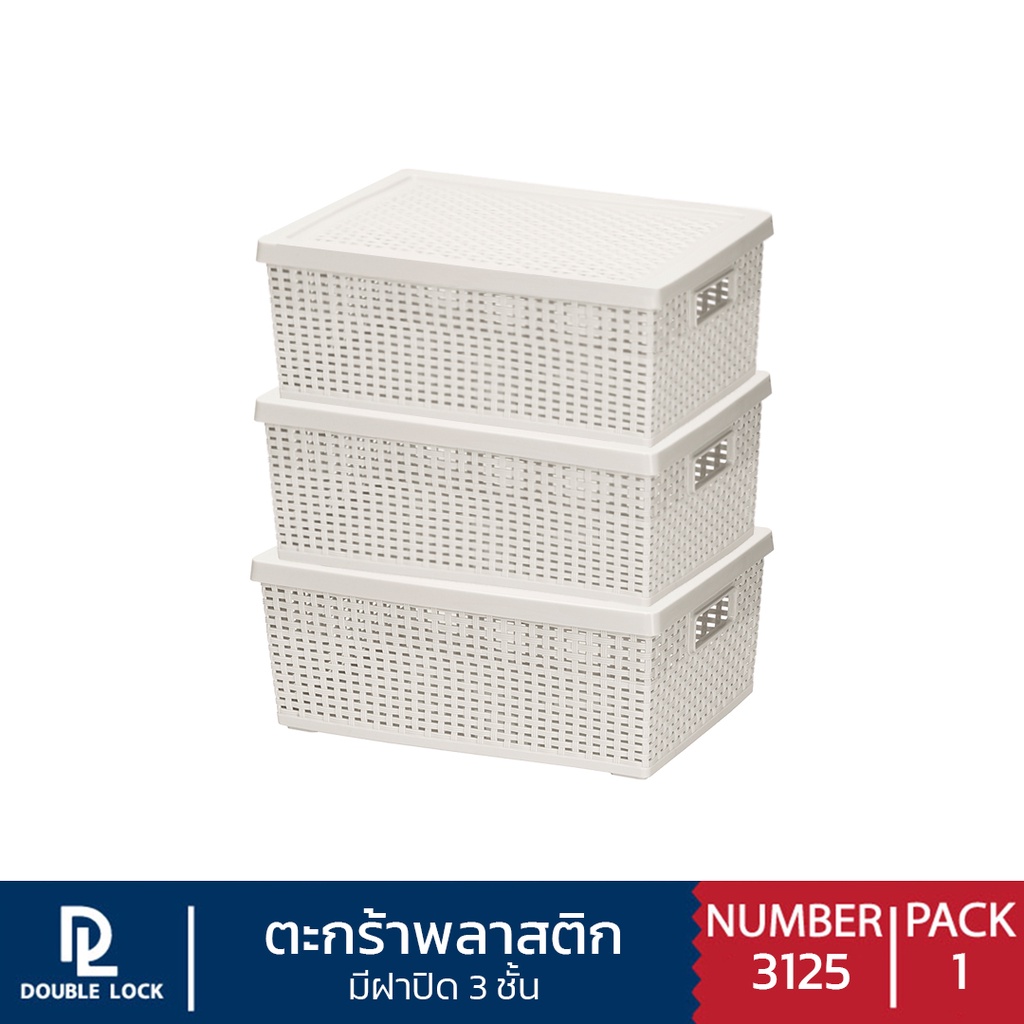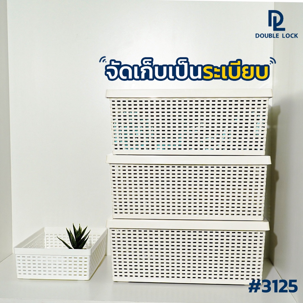 Double Lock ตะกร้าพลาสติกมีฝาปิดลายหวายเก็บของอเนกประสงค์ รุ่น 3125(3)