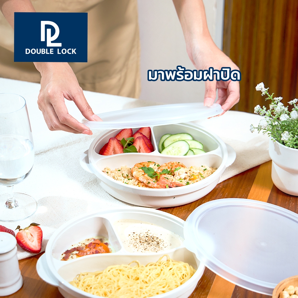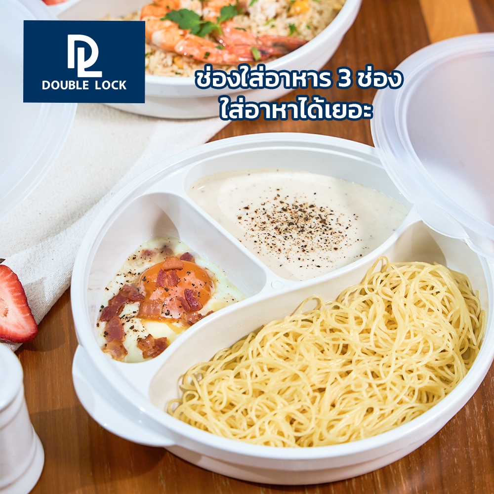 Double Lock กล่องใส่อาหาร กล่องอาหารแบ่งสามช่องพร้อมฝาปิดรุ่น 4606