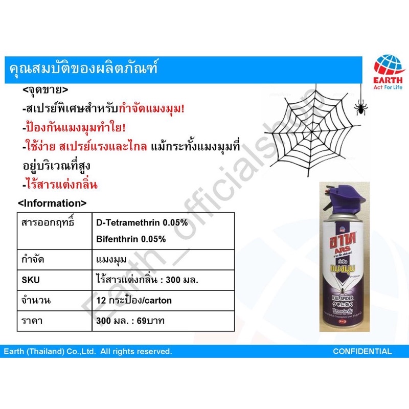 อาท สเปรย์กำจัดแมงมุม สเปย์ไล่แมงมุม และป้องการสร้างใยแมงมุม 300 มล. ARS JET SPIDER 300mL
