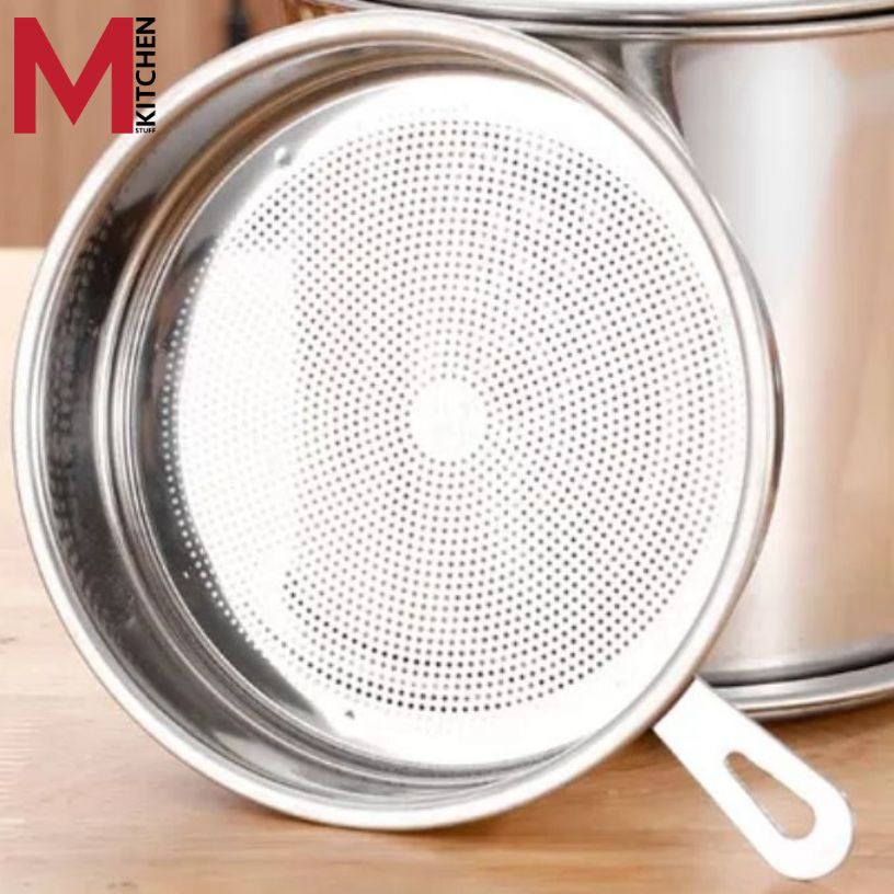 M KITCHEN OF12 หม้อรองน้ำมัน หม้อกรองน้ำมัน 1.5 ลิตร หม้อสแตนเลส พร้อมฝาปิด และ ตะแกรง หม้อ (B1)