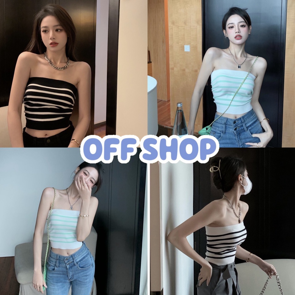 OFF SHOP 🥻ใหม่ 2025 เสื้อเกาะอกไหมพรม ผ้านิ่มลายทางใส่สบายน่ารักเกาหลีมาก เสื้อแฟชั่นผู้หญิง-5275