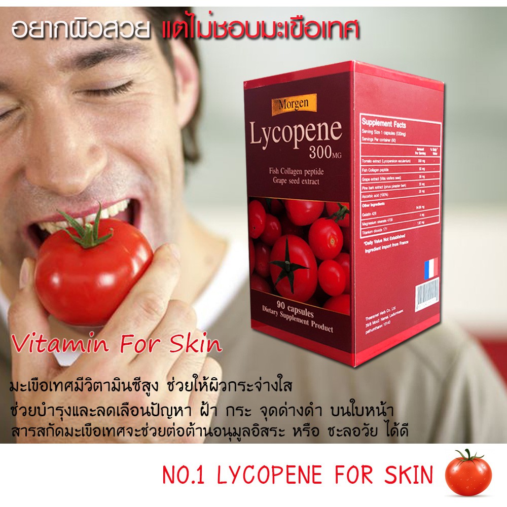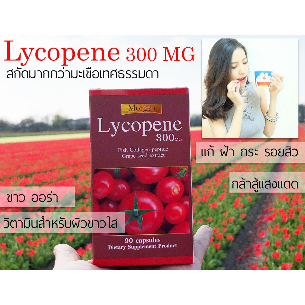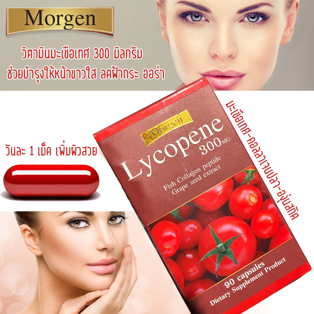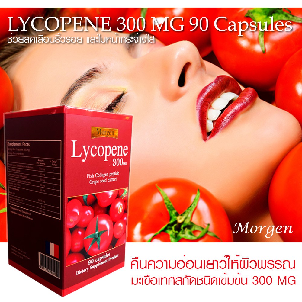 🔥Morgen Lycopene 300 MG 90 เม็ด ( 1 กระปุก ) Exp.08/2027 (ของแท้!มีสติกเกอร์กันปลอม)