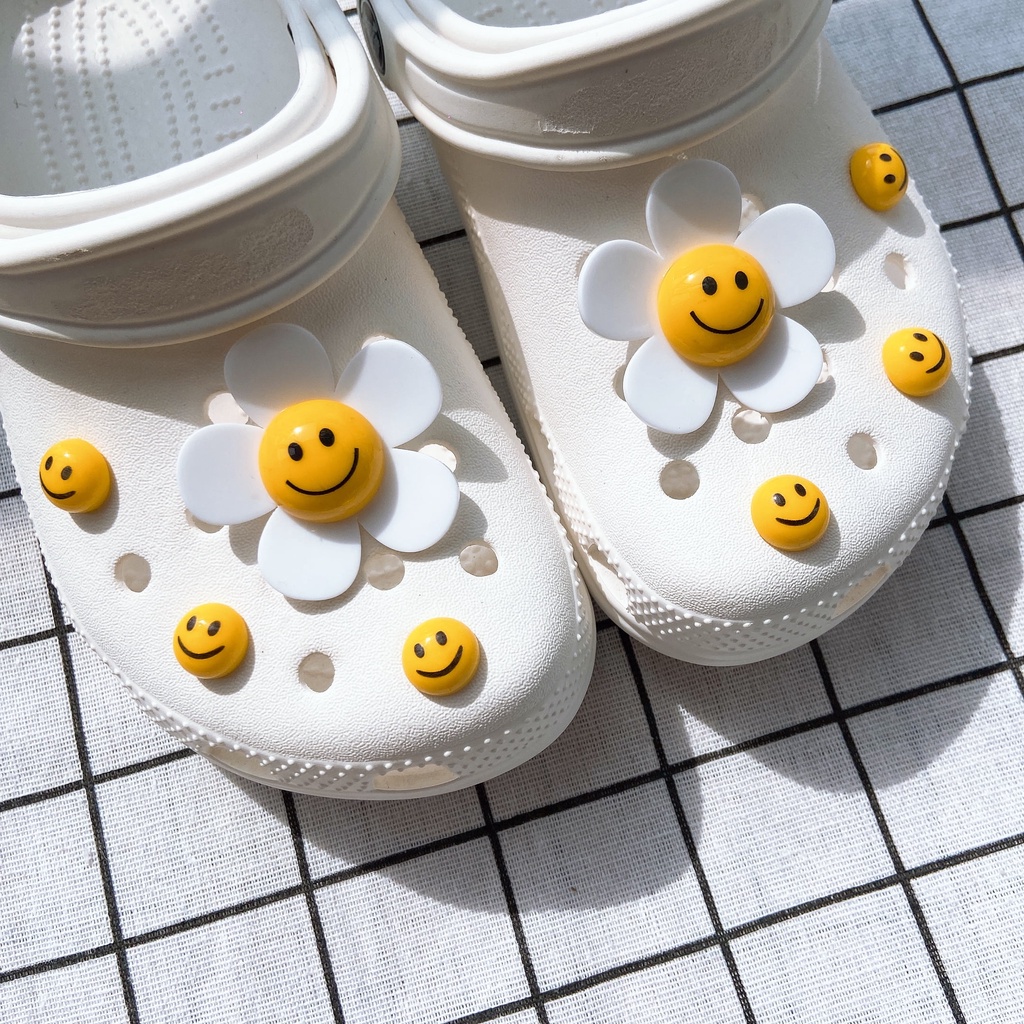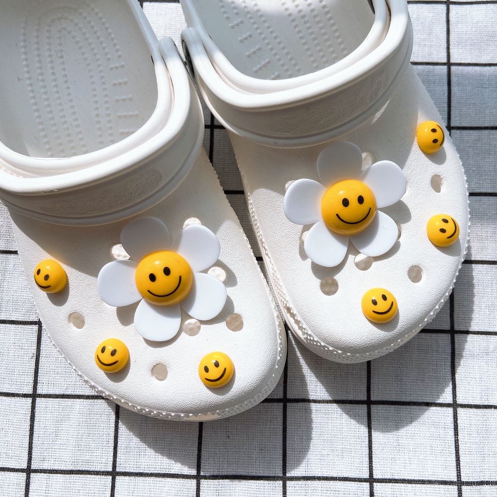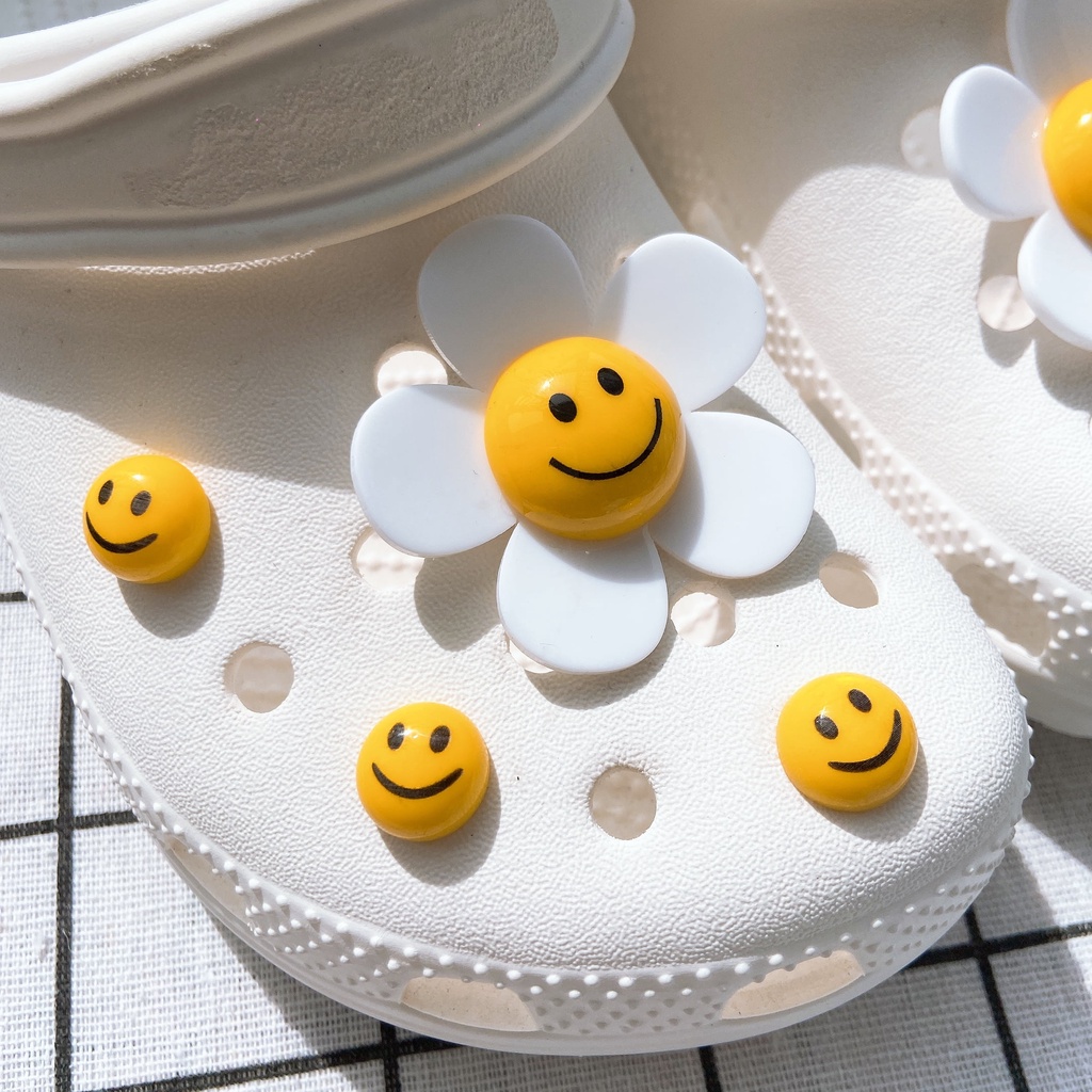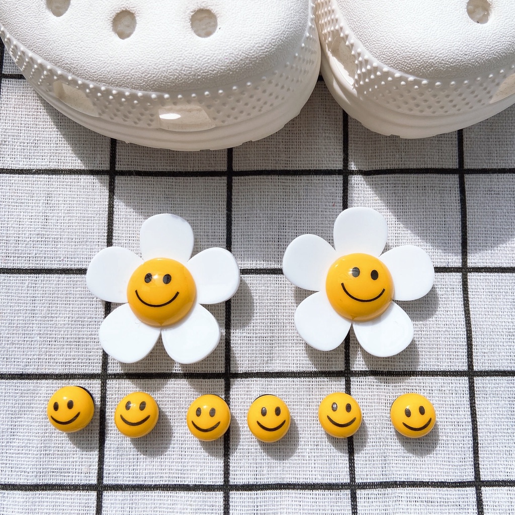 INS 8pcs ยิ้ม face ดอกทานตะวัน clog รองเท้าแตะสติกเกอร์ Charm ปุ่ม DIY อุปกรณ์เสริมสําหรับรองเท้าหัวเข็มขัดรองเท้าอุปกรณ์เสริมรองเท้าตกแต่ง NO รองเท้า