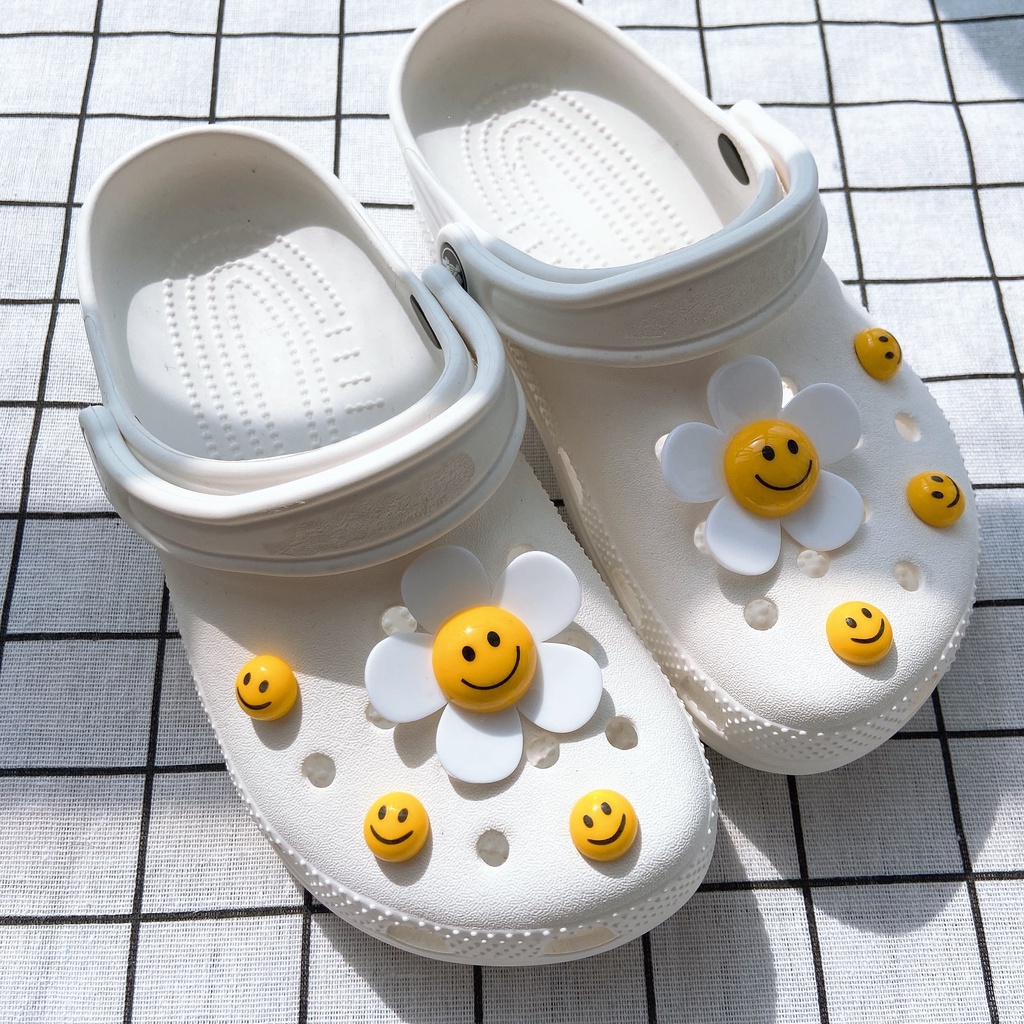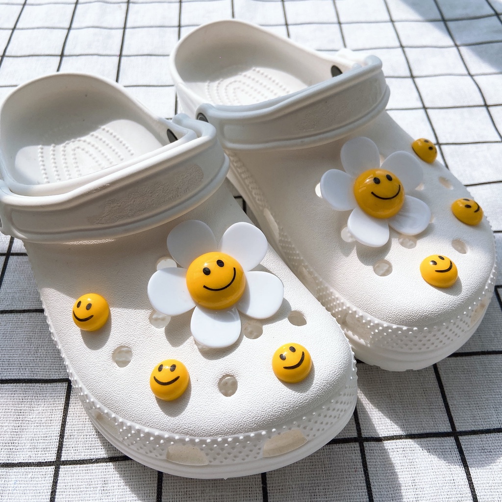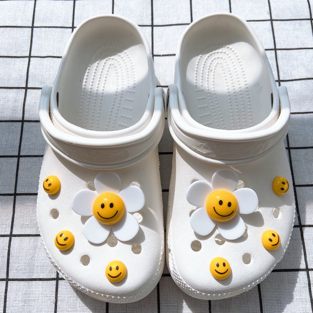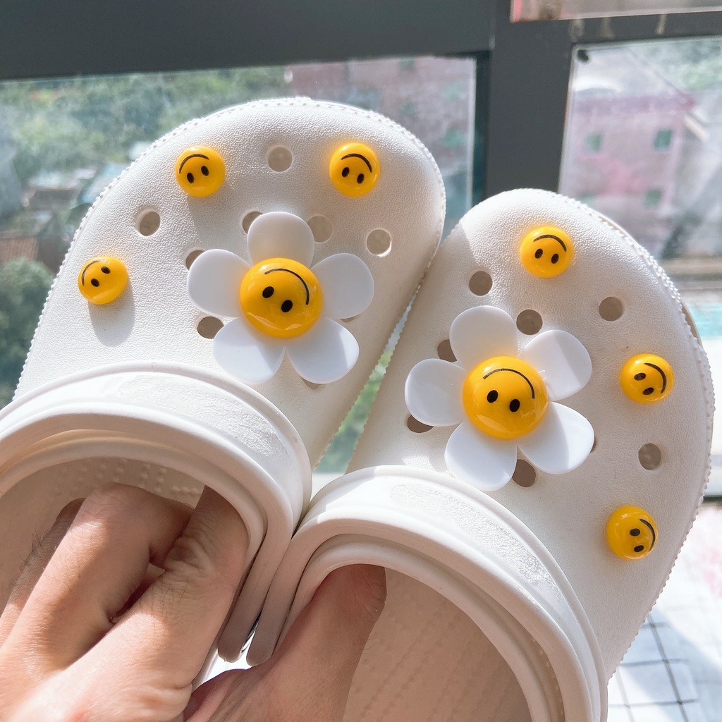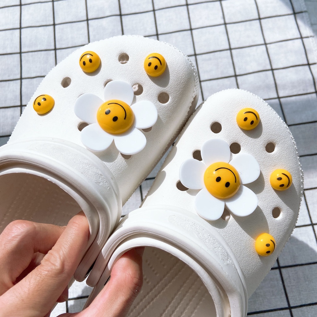 INS 8pcs ยิ้ม face ดอกทานตะวัน clog รองเท้าแตะสติกเกอร์ Charm ปุ่ม DIY อุปกรณ์เสริมสําหรับรองเท้าหัวเข็มขัดรองเท้าอุปกรณ์เสริมรองเท้าตกแต่ง NO รองเท้า