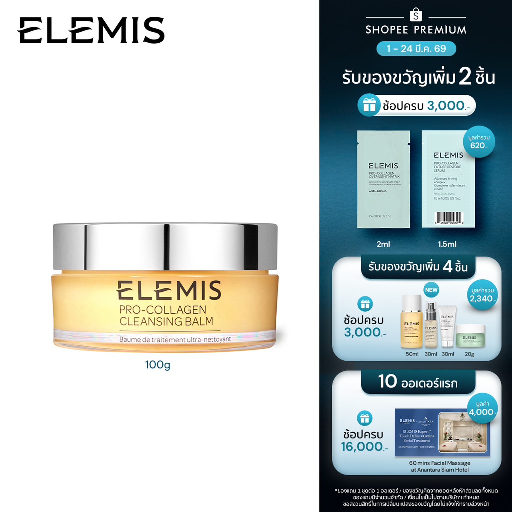 Elemis Pro-Collagen Cleansing Balm 100 g. (เช็ดทำความสะอาดเครื่องสำง) บาล์มล้างเมคอัพ 3in1 ชุ่มชื้น สปาผิว