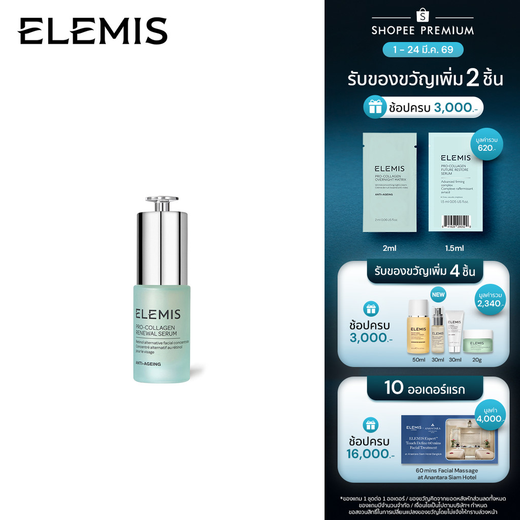 Elemis Pro-Collagen Renewal Serum 15ml. เอเลมิส โปร คอลลาเจน รีนิวัล เซรั่ม เผยผิวเรียบเ นียน กระจ่างใส