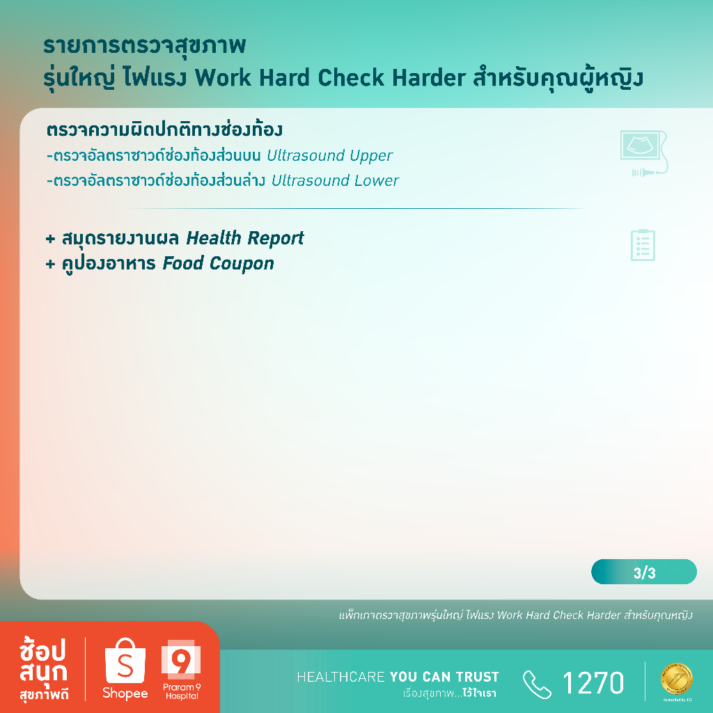 [E-coupon] รพ.พระรามเก้า แพ็กเกจตรวจสุขภาพรุ่นใหญ่ไฟแรง Work Hard, Check Harder สำหรับคุณผู้หญิง Praram9Hospital