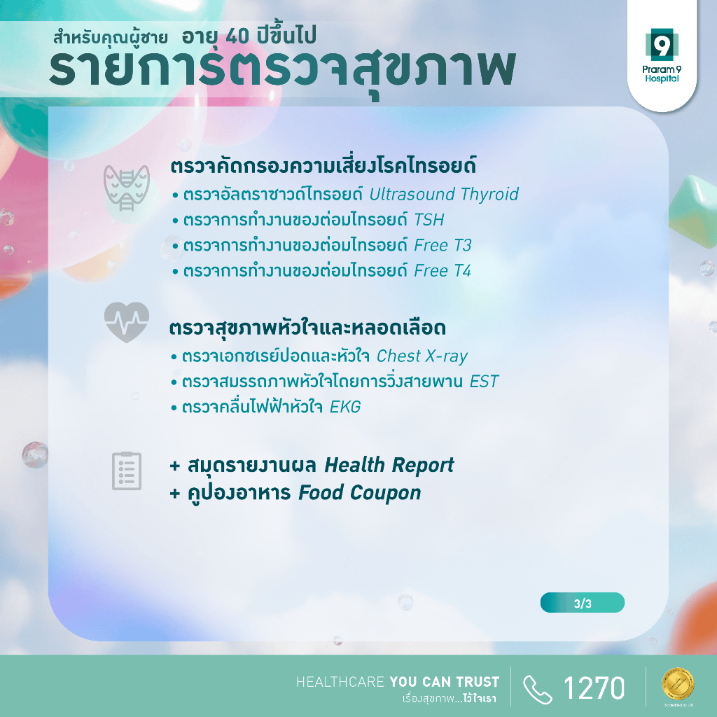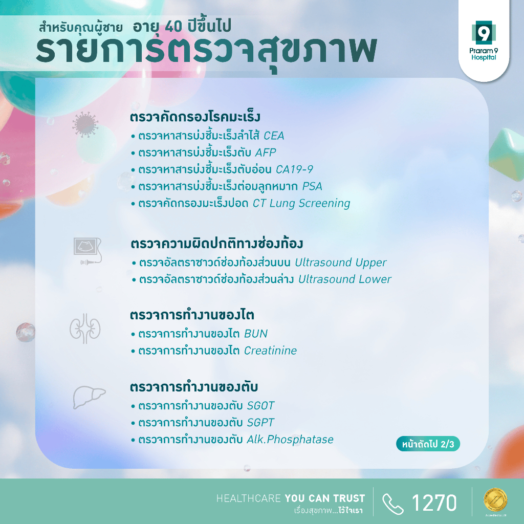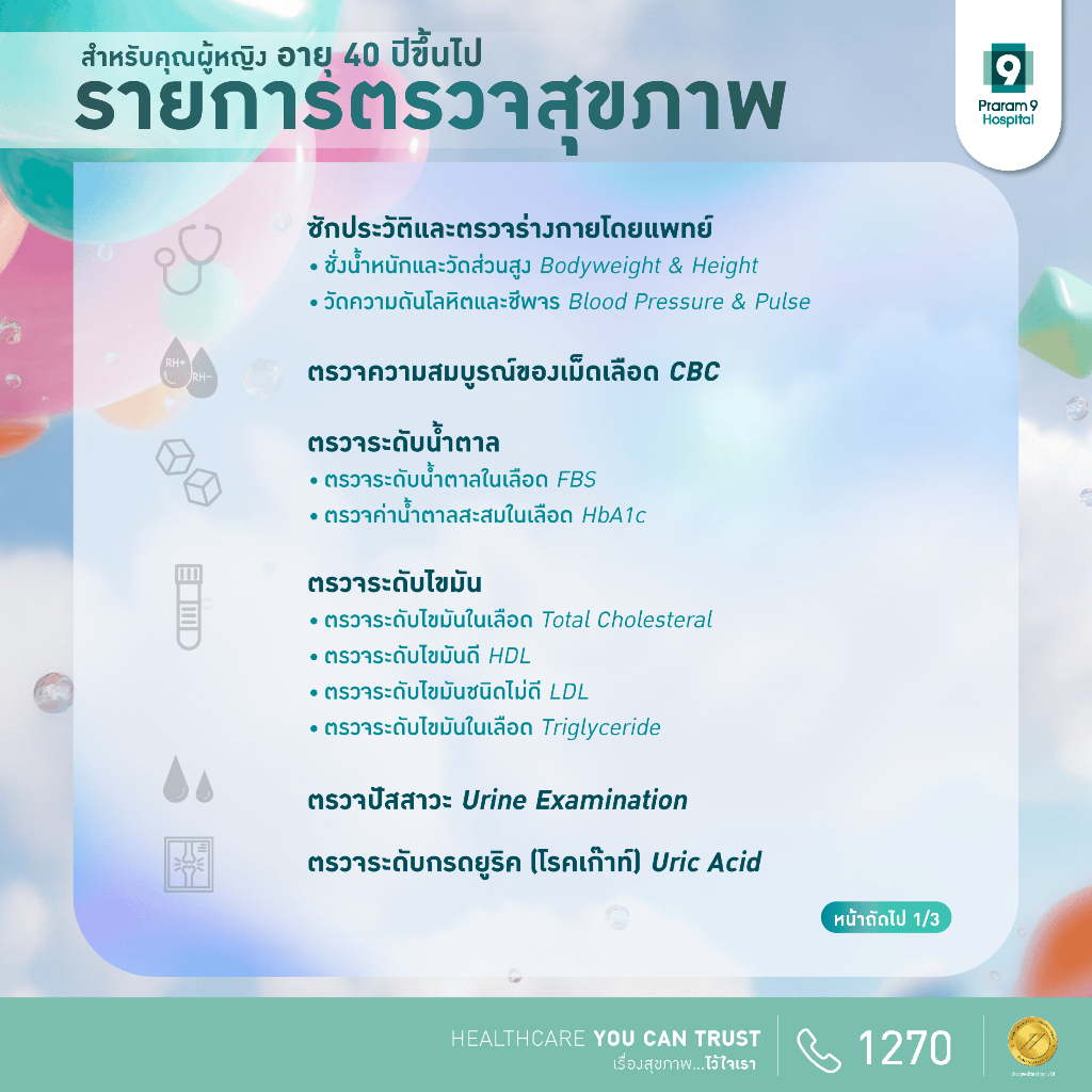 [E-Coupon] รพ.พระรามเก้า แพ็กเกจตรวจสุขภาพสำหรับคุณผู้ชายและคุณผู้หญิง อายุ 40 ปีขึ้นไป Praram9Hospital
