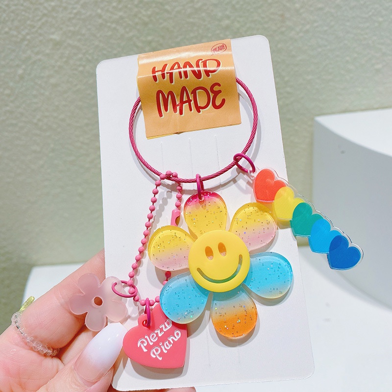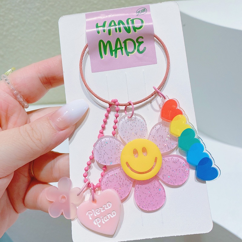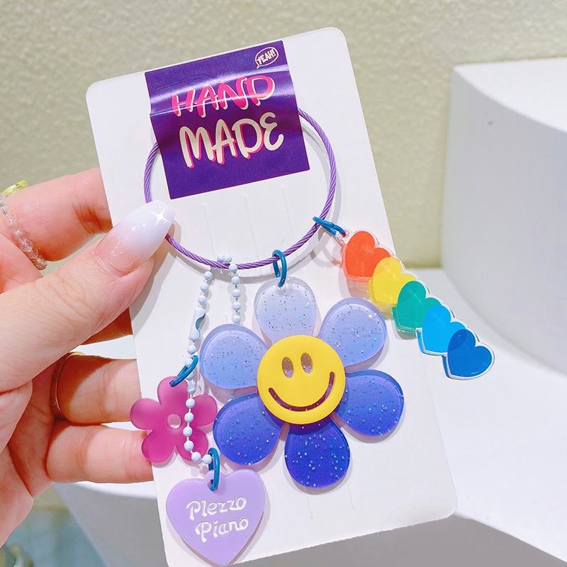 [ร้านไทย พร้อมส่ง] พวงกุญแจดอกไม้หน้ายิ้ม พร้อมจีตกแต่ง พวงกุญแจอะคริลิก พวงกุญแจดอกไม้ ที่ห้อยกระเป