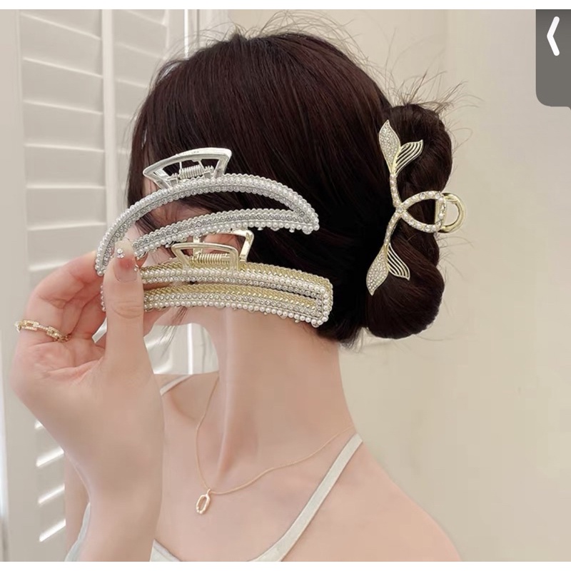 กิ๊บหนีบผมเกาหลีโลหะสีทองเงินประดับมุกเพชรฟิลคุณหนุ(พร้อมส่ง🌈✨)