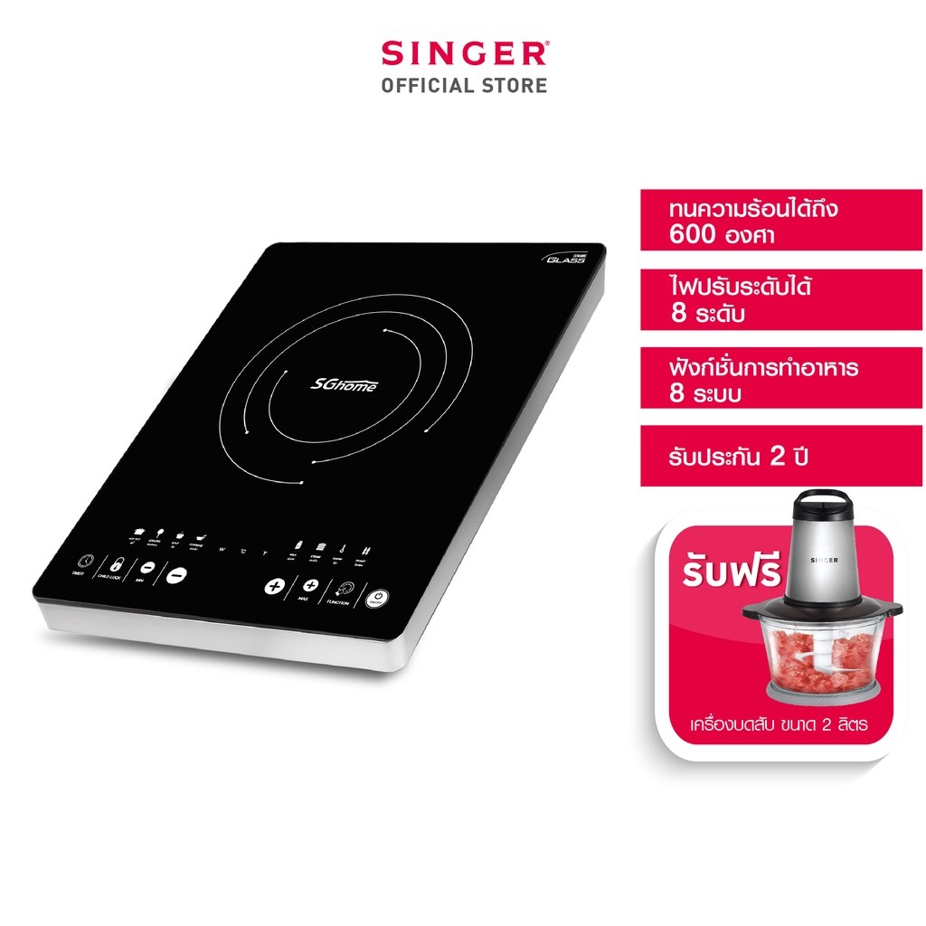 SG HOME เตาแม่เหล็กไฟฟ้า (แถมหม้อเอนกประสงค์) + แถมฟรีเครื่องบดสับ 2 ลิตร