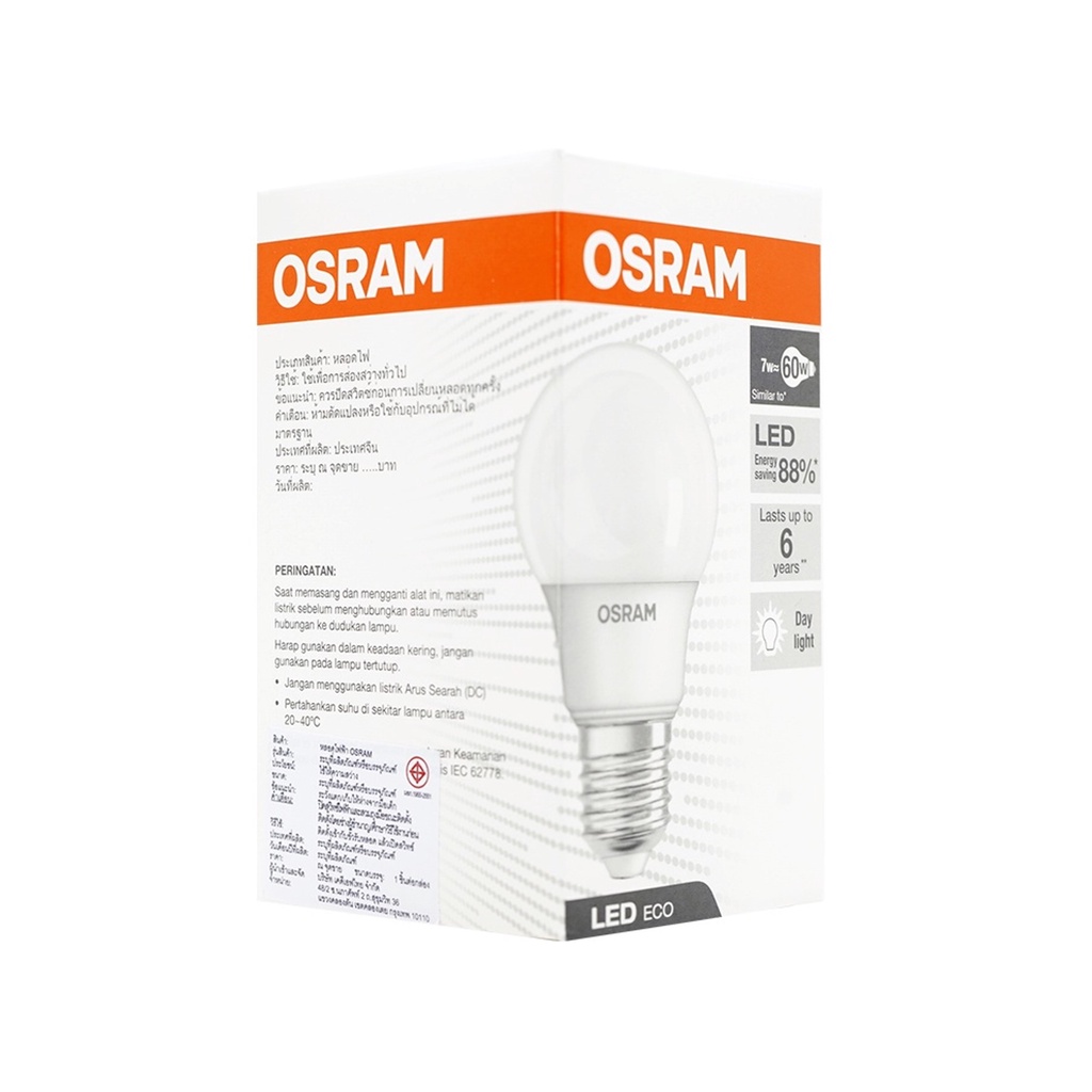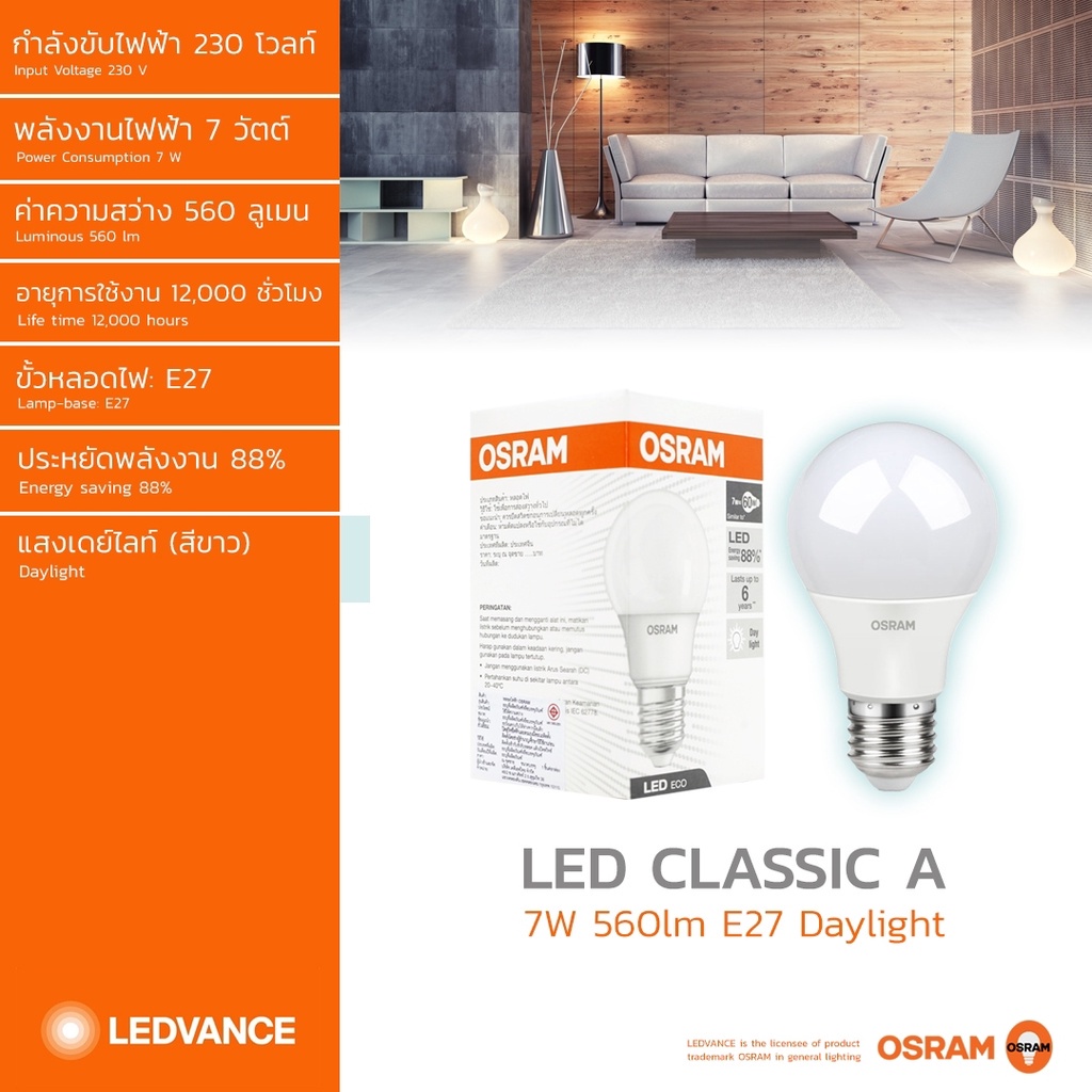 OSRAM หลอดไฟ LED Bulb E27 7W 230V 560lm แสงเดย์ไลท์ (1 หลอด)
