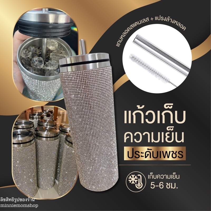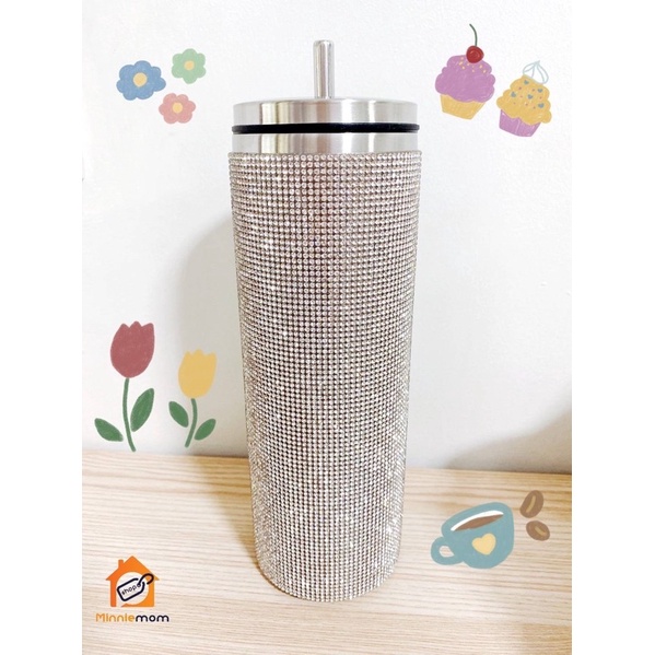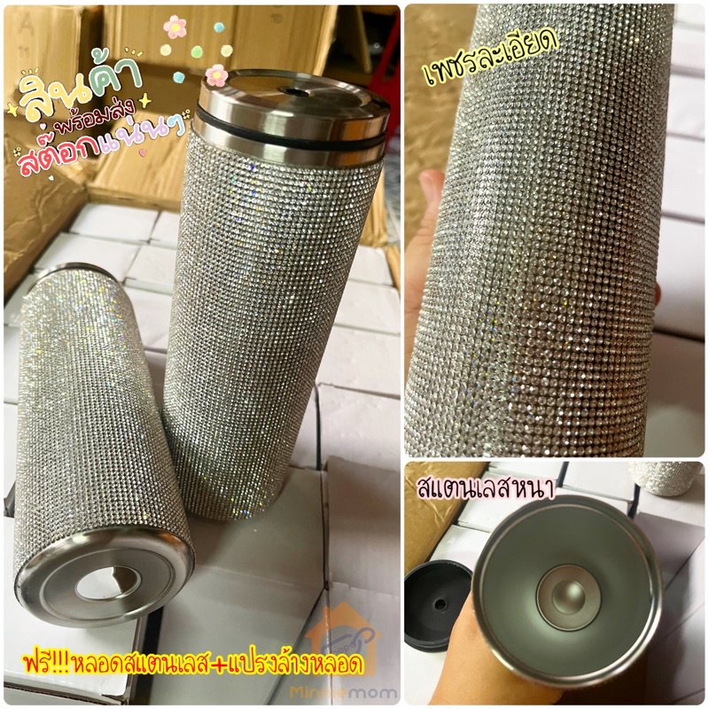 งานเพชรละเอียด พร้อมส่ง🎉 แก้วเก็บความเย็นวิบวับ ประดับคริสตัล สแตนเลส304