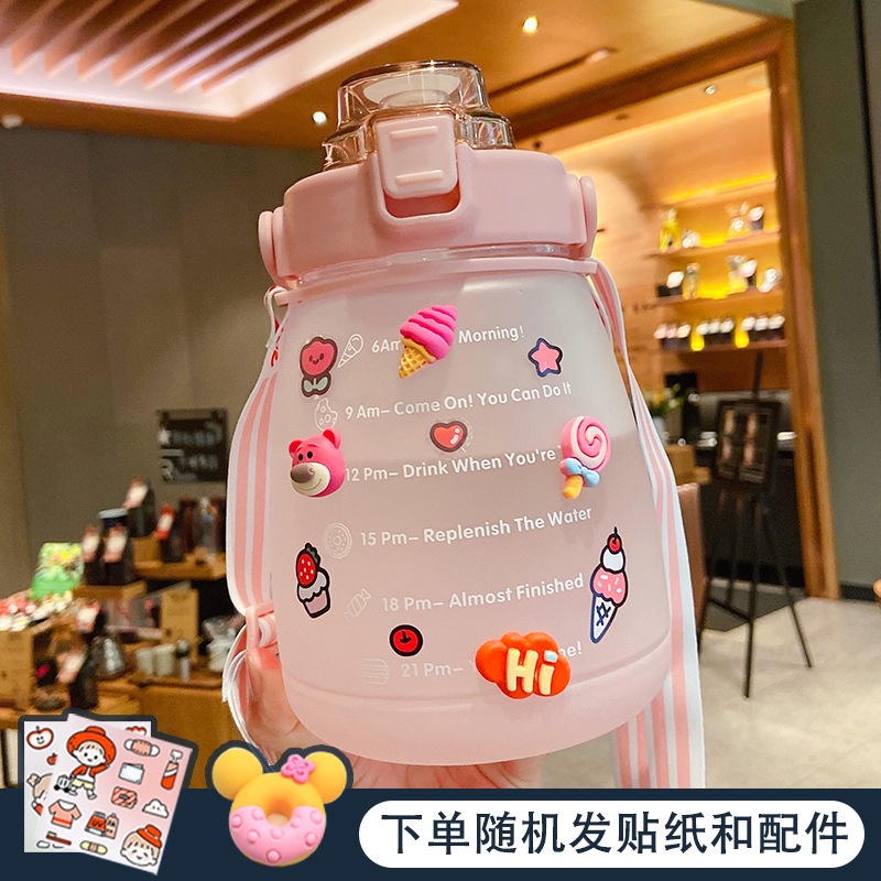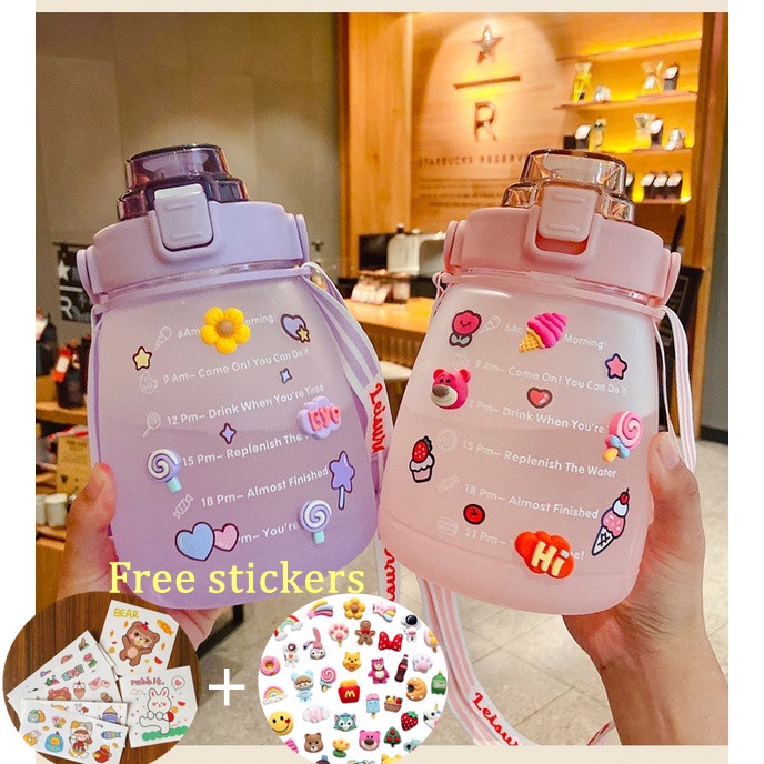 🚚พร้อมส่ง🚚 สินค้าพร้อมส่ง (ฟรีสติ๊กเกอร์)ขวดน้ำ 1500ml ขวดน้ำน่ารัก ใหม่สุด! ฮิตสุด! ขวดน้ำ 1 ลิตร กระติกน้ำทรงอวบอ้วน น่ารักมากกกก สไตล์เกาหลี มาพร้อม 4 สีและสายสะพายให้เลือก