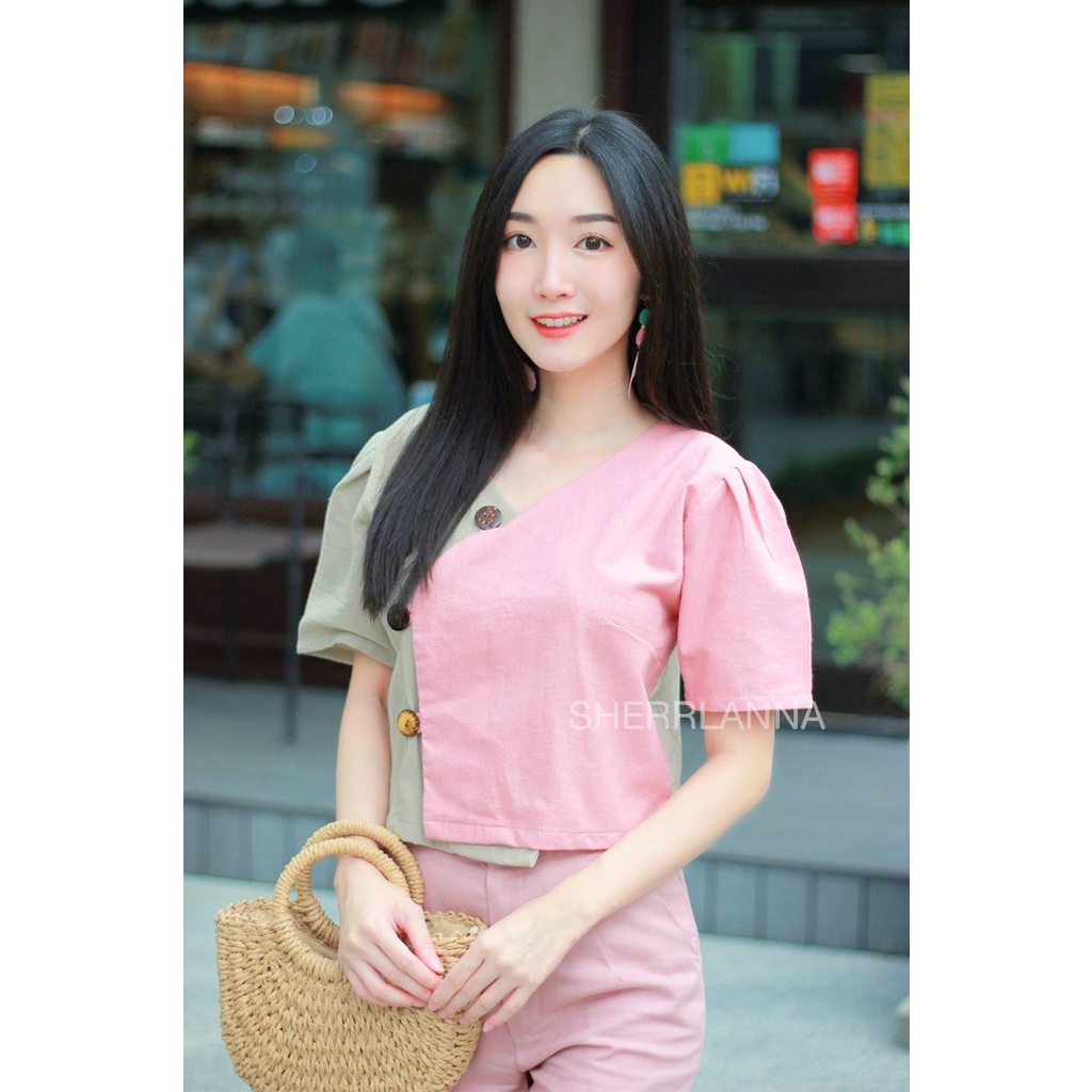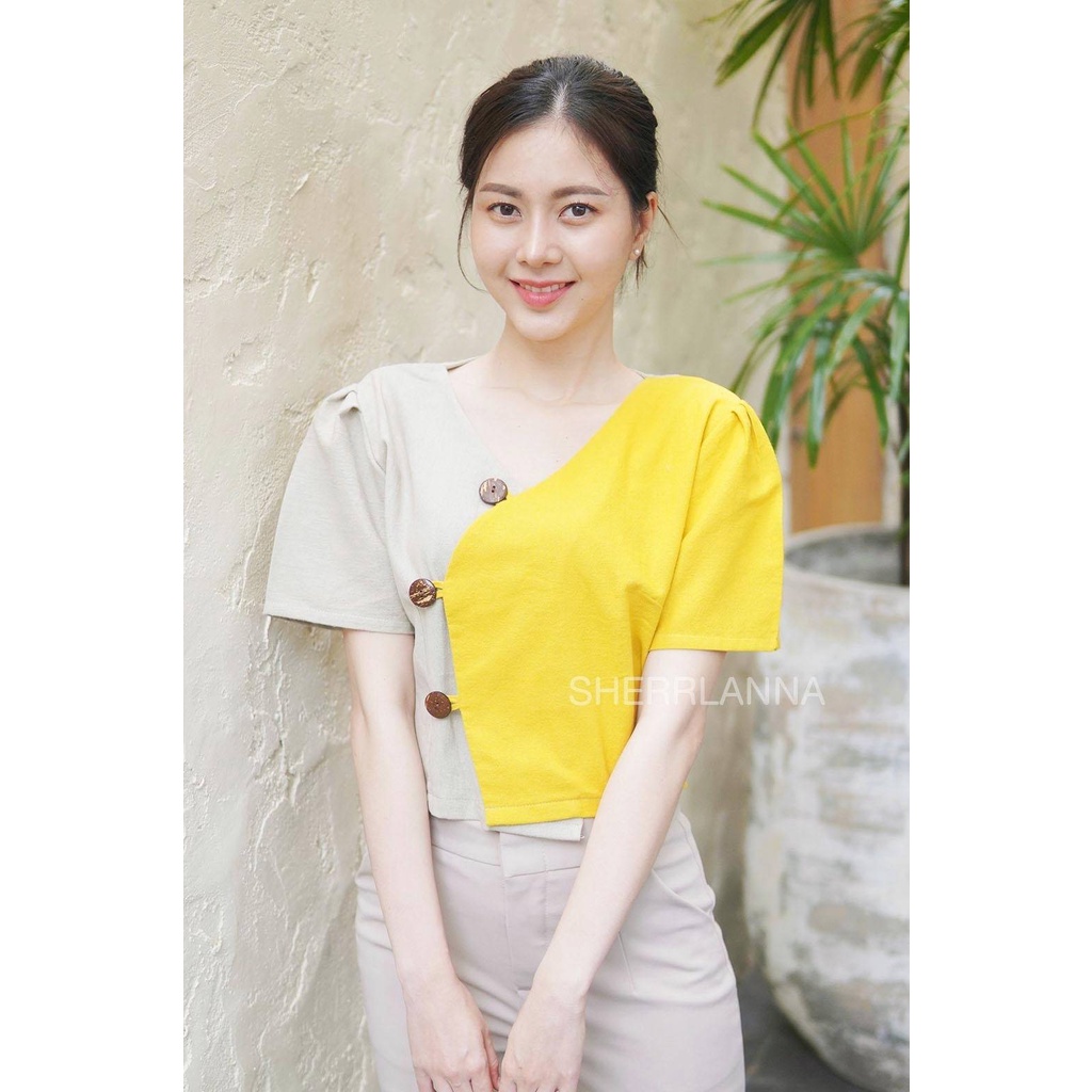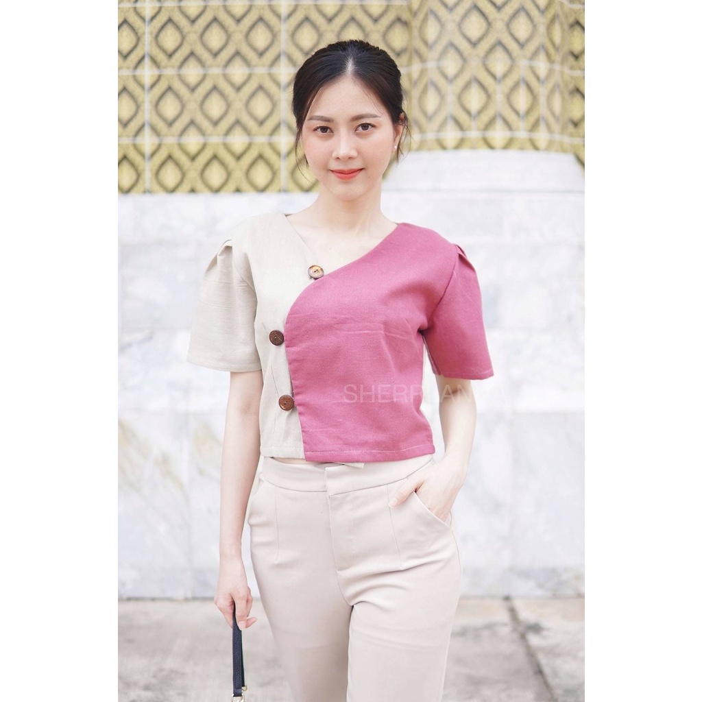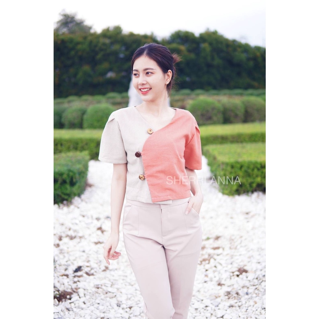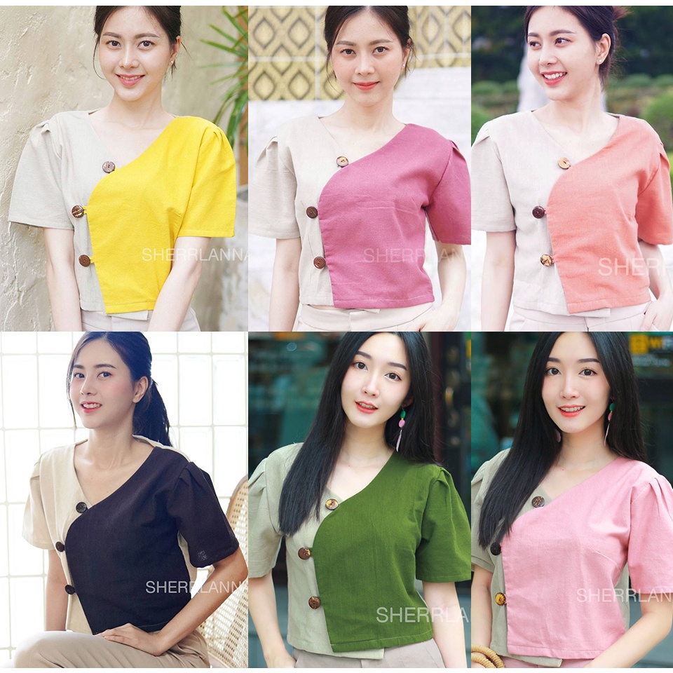 เสื้อผ้าฝ้ายพื้นเมืองแต่งกระดุมกะลา โทนสีทูโทน
