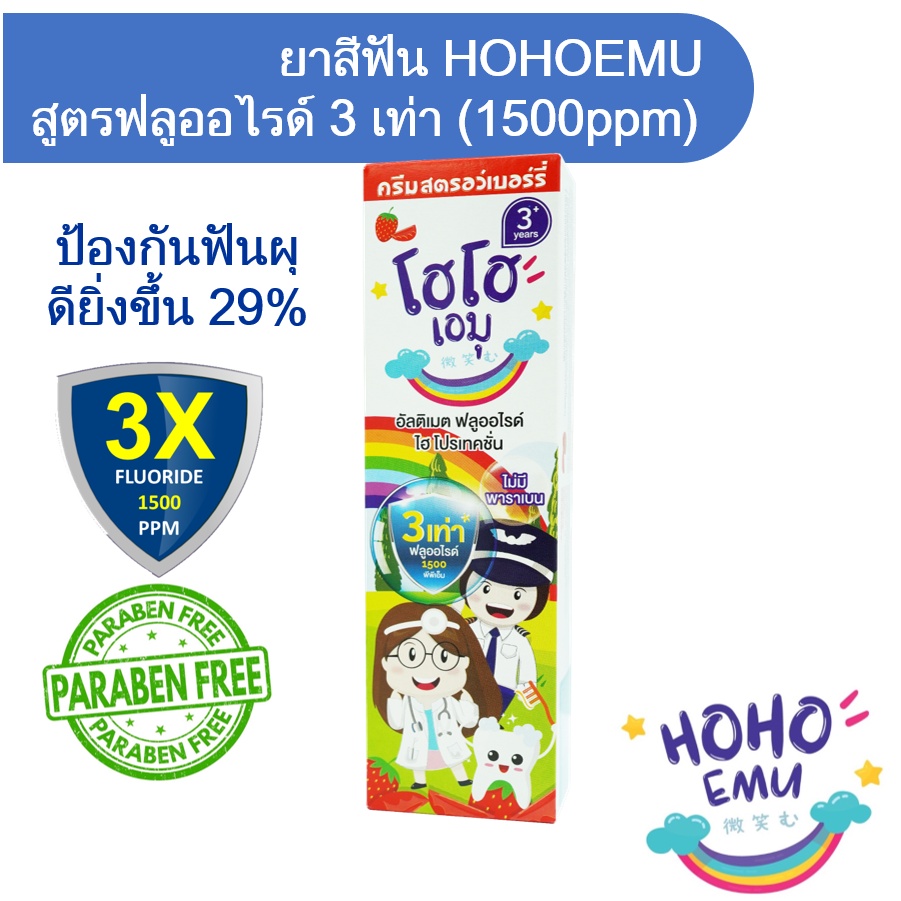HOHOEMU โฮโฮเอมุ ยาสีฟันเด็ก ฟลูออไรด์ 1500ppm ขนาด 65g รสสตรอเบอรี่