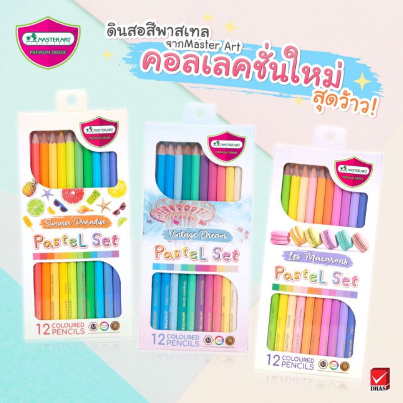 ดินสอสี สีไม้ ดินสอสีไม้ รวมเซท สีพิเศษ 12 สีพาสเทล Pink เกรย์สเกล และ เมทัลลิค จำนวน 1 กล่อง แบนด์แท้จาก Master Art