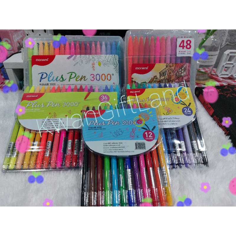 (ชุดที่1/2) ปากกาโมนามิชุด 24,36,48 สี ปากกาสีน้ำพลัสเพน 3000 แบบเซท Monami Plus Pen 3000