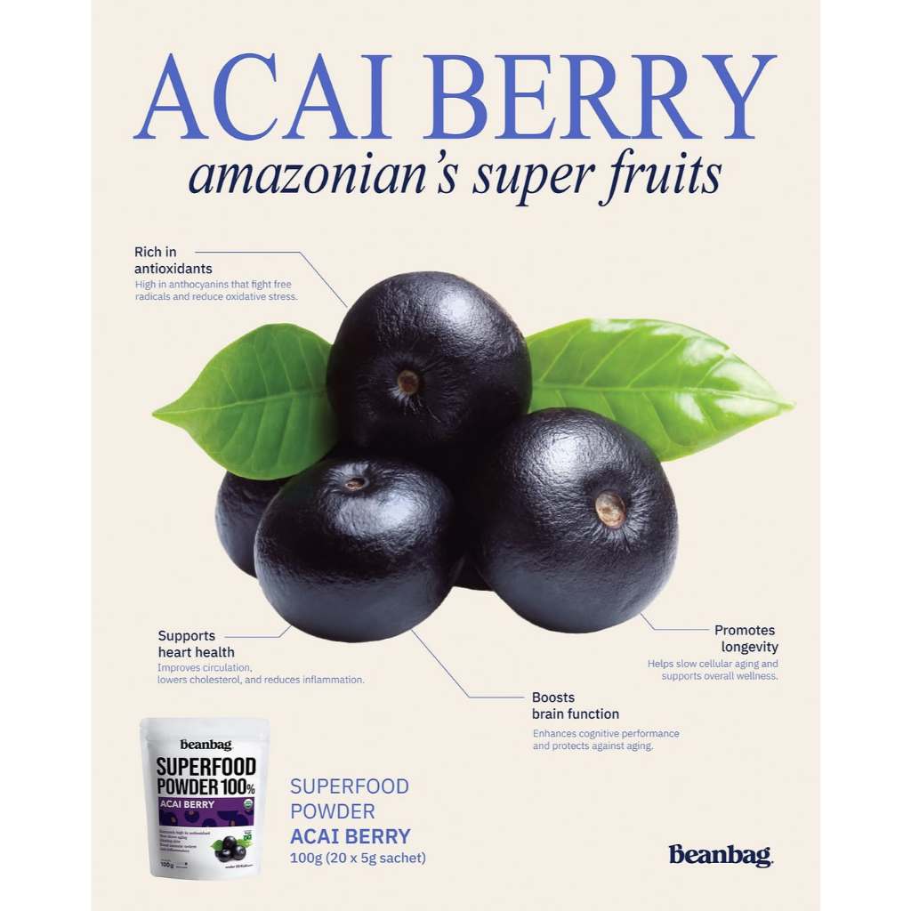 Beanbag superfood Organic Acai berry เครื่องดื่มซุปเปอร์ฟู้ด ผงอาซาอิเบอร์รี่ 100g