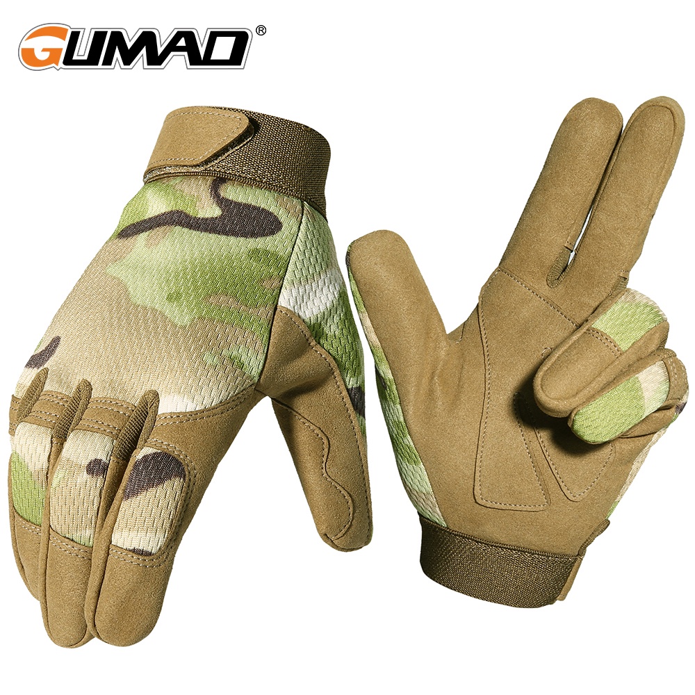 Gumao ถุงมือยุทธวิธี แบบเต็มนิ้ว เพื่อความปลอดภัย สําหรับปีนเขา ขี่จักรยาน กีฬากลางแจ้ง ตกปลา เดินป่า
