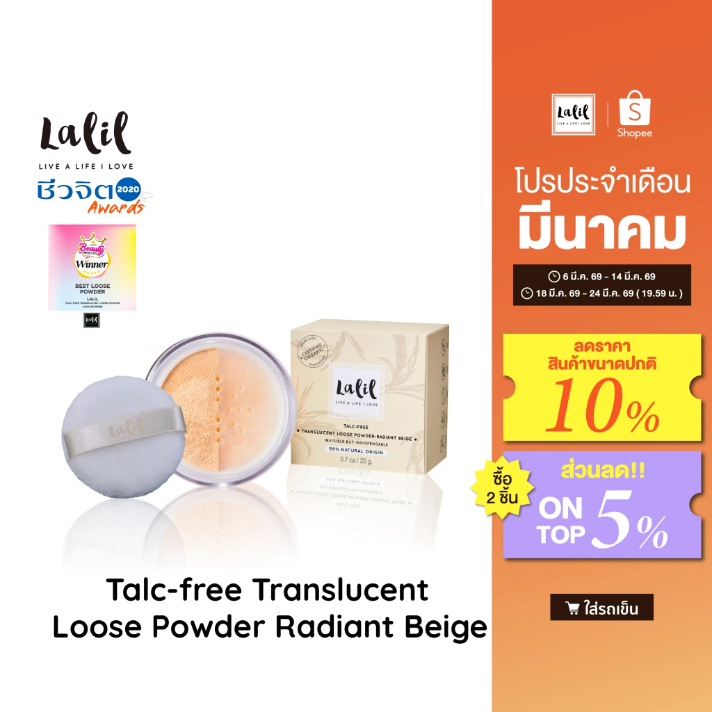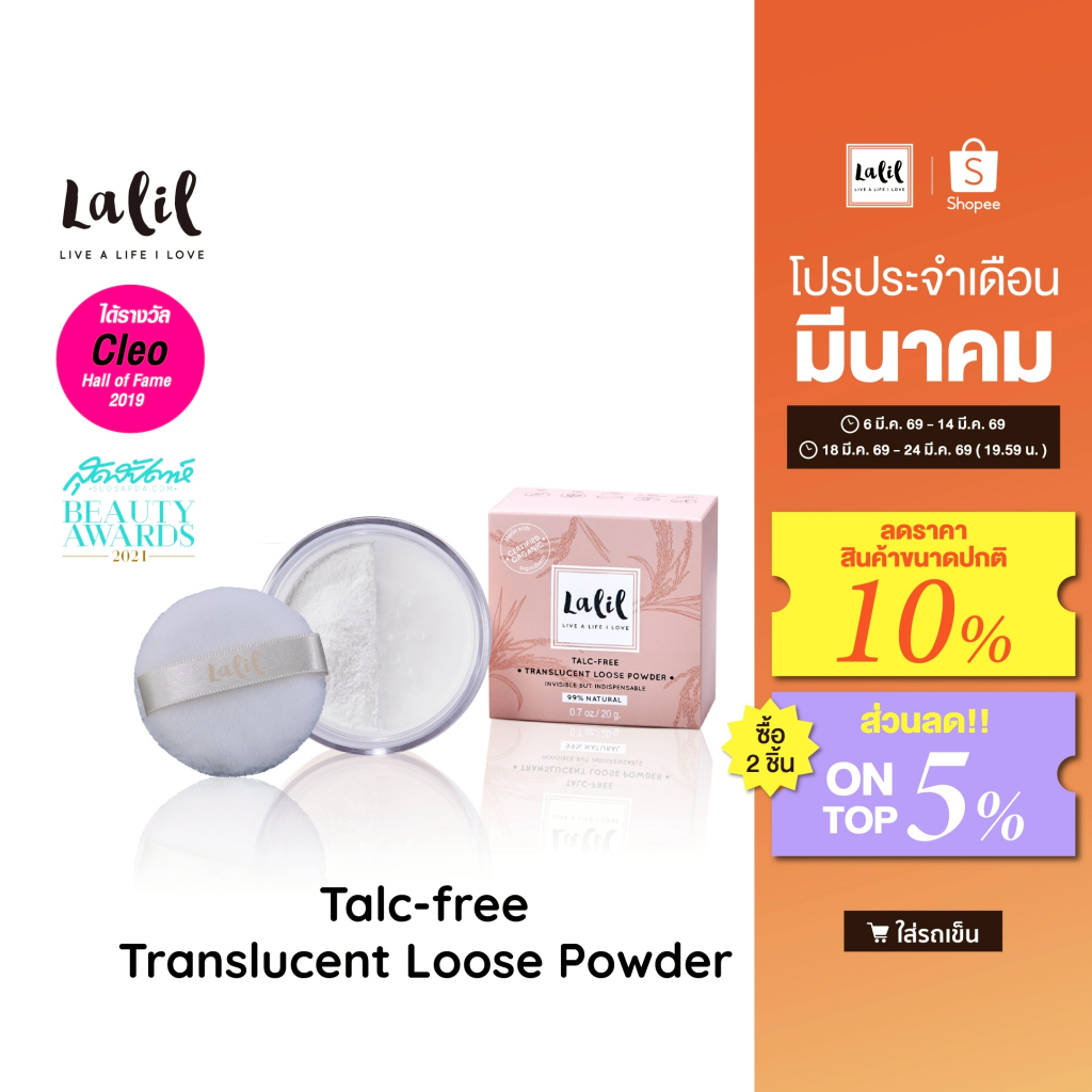 LALIL Talc-free Translucent Loose Powder 20 g. (แป้งฝุ่นคุมมัน 2 สี)