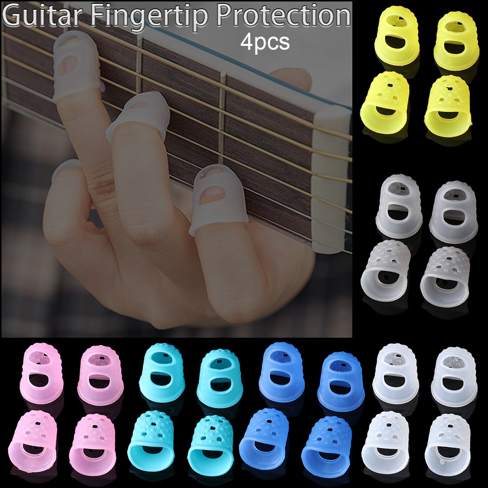 Chink ปลอกซิลิโคนสวมนิ้วมือ กันลื่น 6 สี สําหรับเล่นกีตาร์ อูคูเลเล่ 4 ชิ้น/ชุด