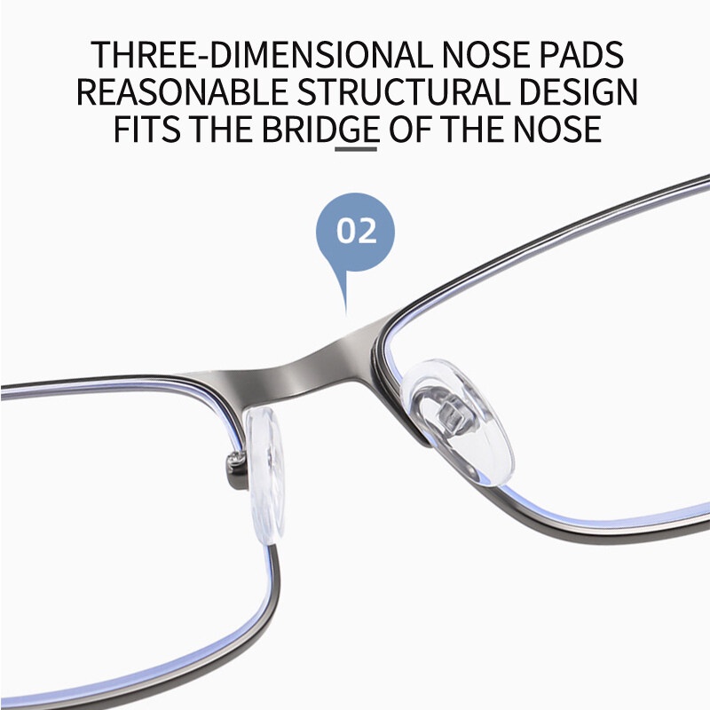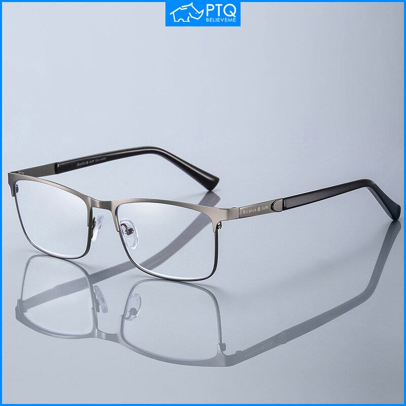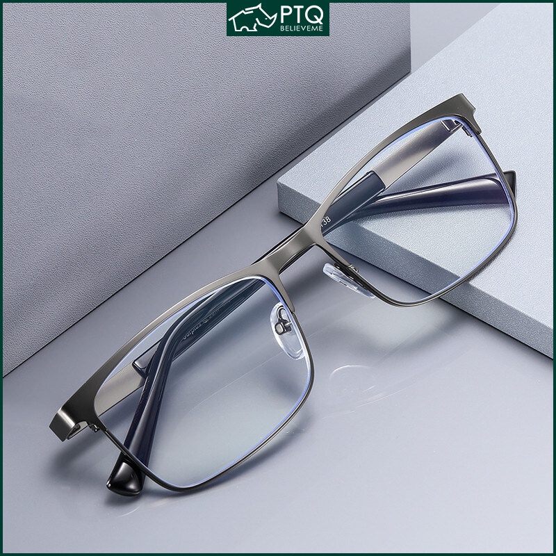 Ptq แว่นตาอ่านหนังสือ สายตายาว กรอบสเตนเลส ป้องกันแสงสีฟ้า เกรด + 100 +150 +200 +250 +300 +350 +400 สําหรับผู้ชาย