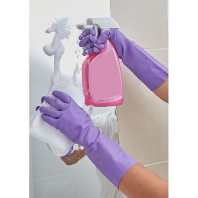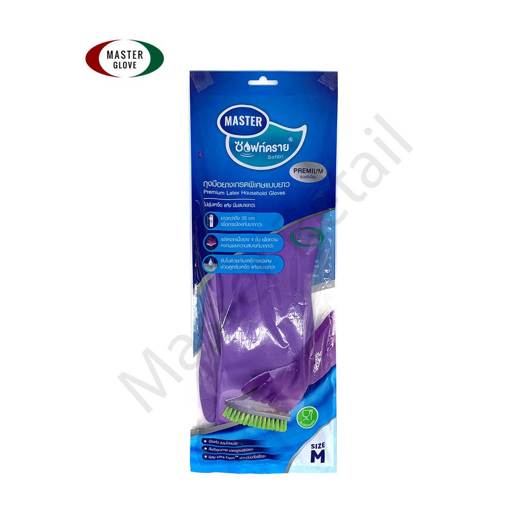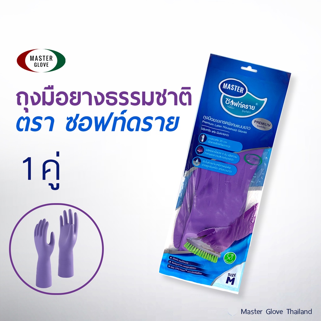 1 คู่ - ถุงมือยางสีม่วง "ตราซอฟท์ดราย" ยางธรรมชาติ 100% ใช้ทำความสะอาด แบบยาว 14" ซับในกำมะหยี่ // MASTER GLOVE