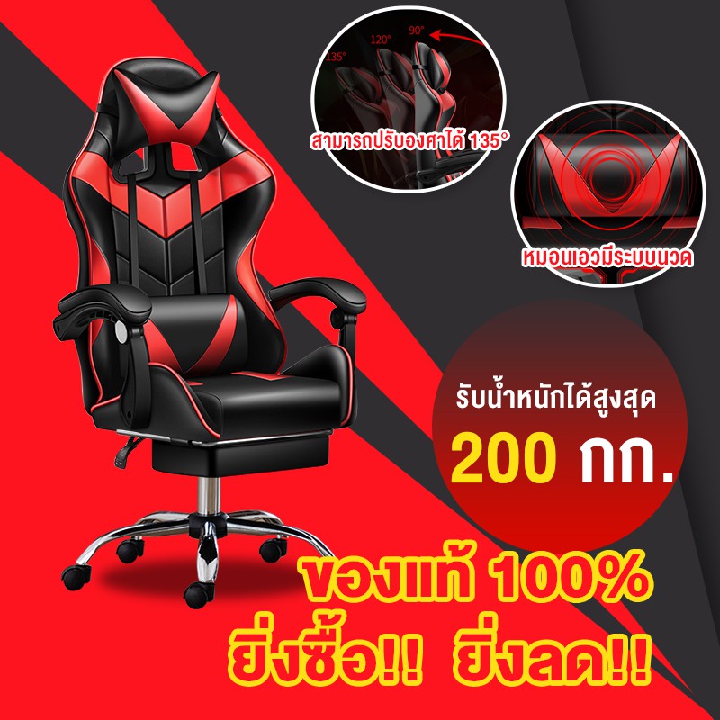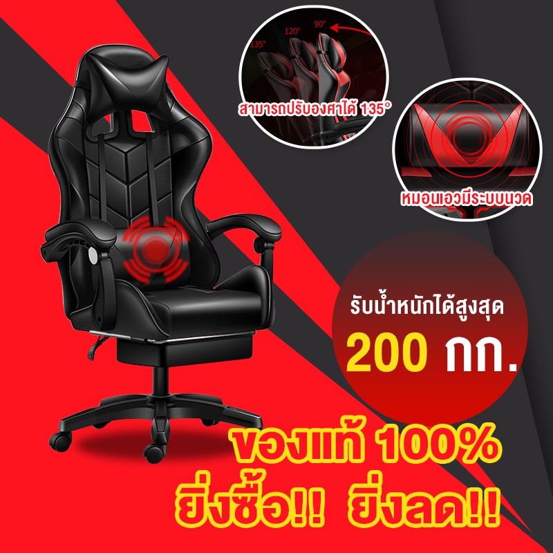 DIY HOME เก้าอี้ทำงาน เก้าอี้เกมมิ่ง นั่งเล่นคอมพิวเตอร์ปรับสูงต่ำได้ หมอนเอวมีระบบนวด Gaming Chair