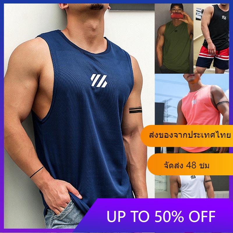 [สินค้าสปอต] เสื้อกล้ามผู้ชาย แขนกุด ปีกเว้า สำหรับออกกำลังกาย วิ่ง ฟิตเนส