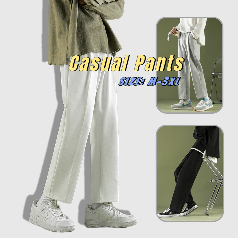 [การจัดส่งในท้องถิ่น] กางเกงขายาว ลำลอง สีพื้น ทรงหลวม สำหรับผู้ชาย ขนาดใหญ่ สีดำ กางเกงผู้ชาย