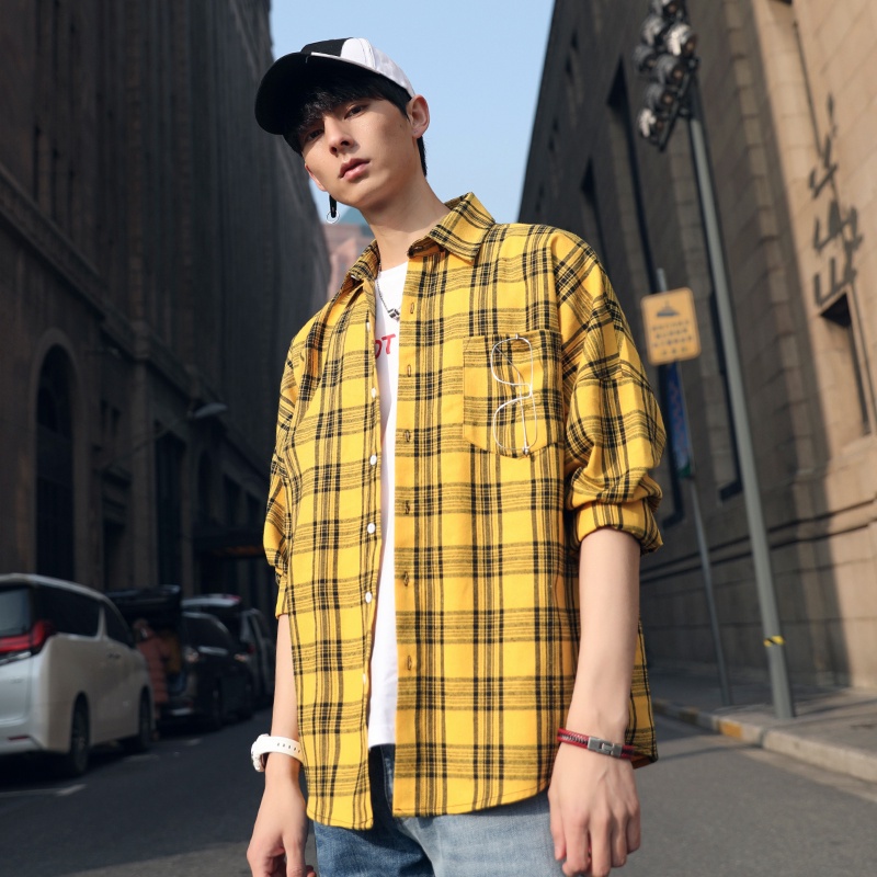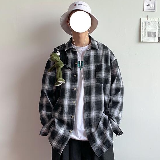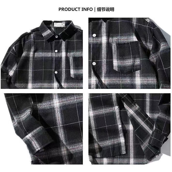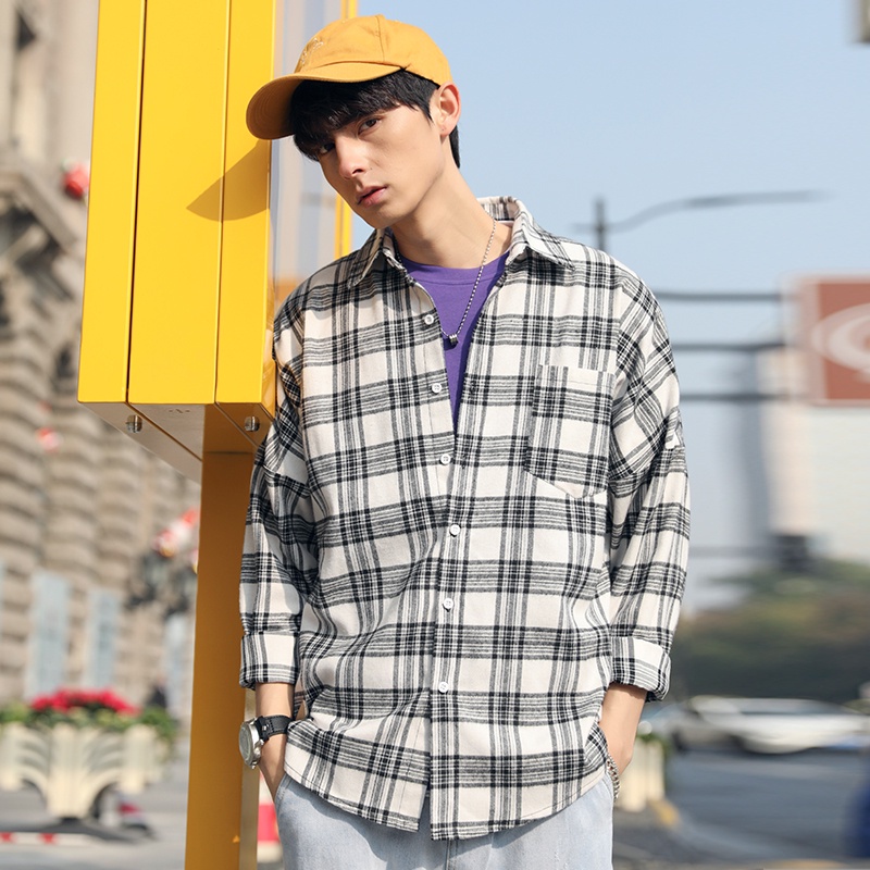 [การจัดส่งในท้องถิ่น] เสื้อเชิ้ตแขนยาว ลายสก๊อต ทรงหลวม สไตล์เกาหลี สำหรับผู้ชาย ไซซ์ M-3XL