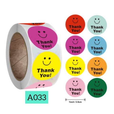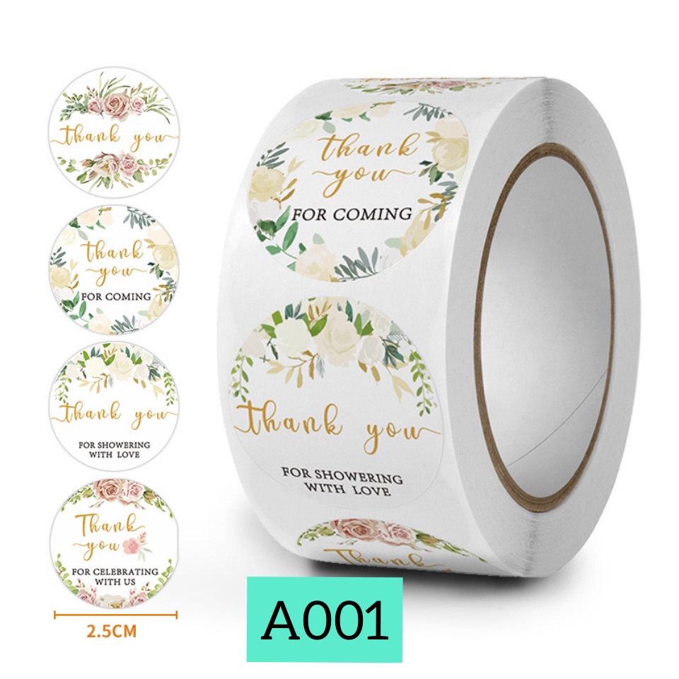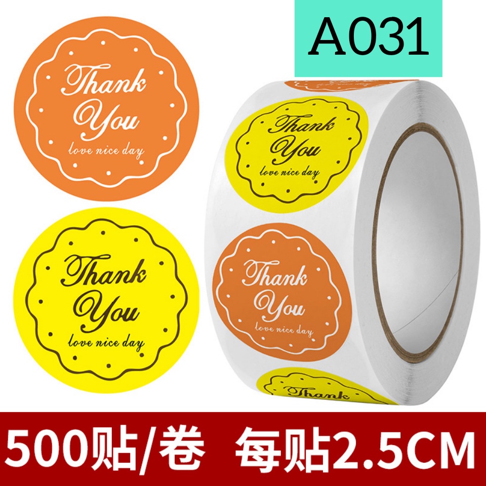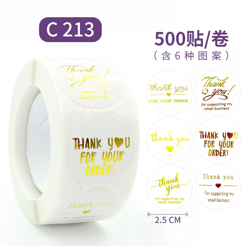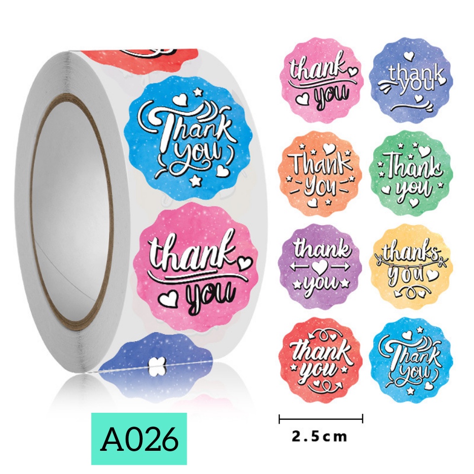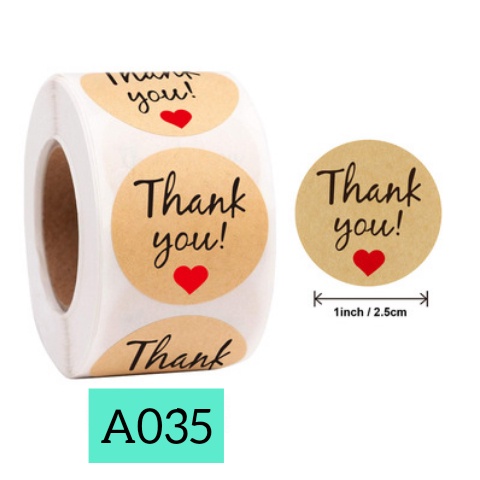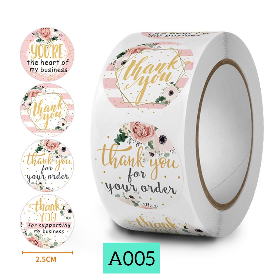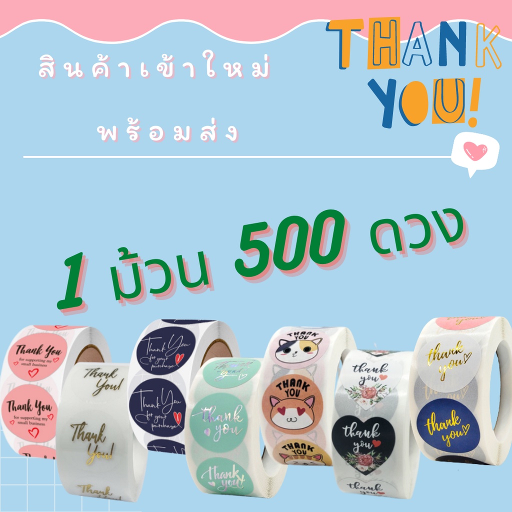 สติ๊กเกอร์พิมพ์ลายขอบคุณ Thank you handmade สติ๊กเกอร์ติดสินค้า ขนาด 2.5 เซนติเมตร 500ดวง