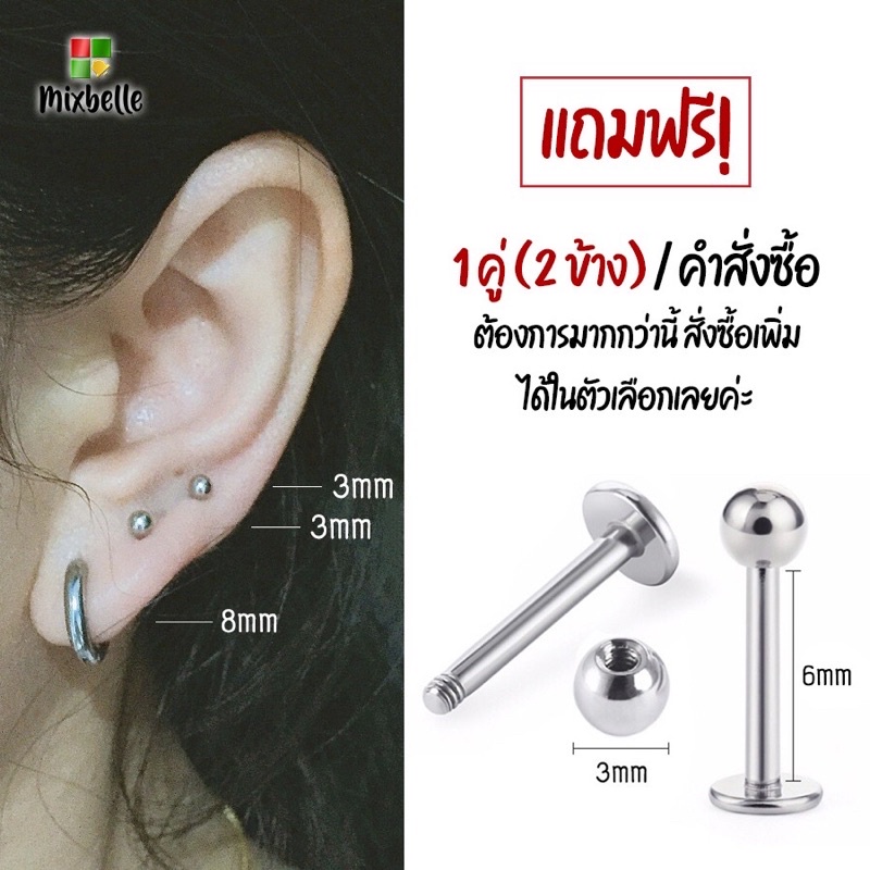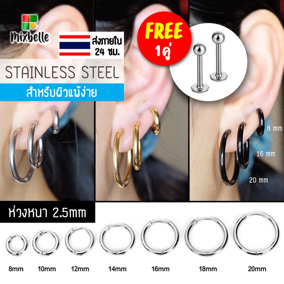 ต่างหูห่วง จิวหู สแตนเลสแท้ 316L สำหรับผิวแพ้ง่าย Stainless Steel Earrings [รหัส K]